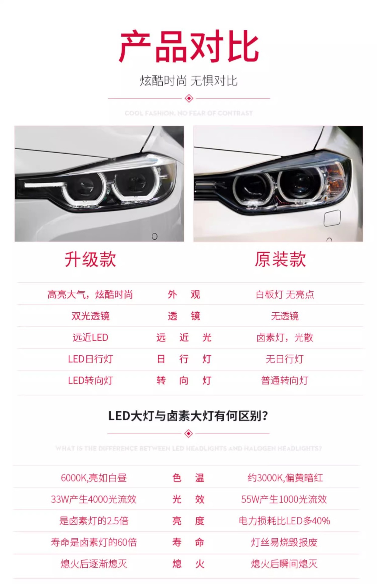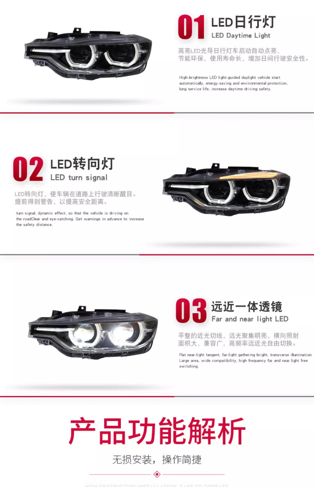 - Sleek Modern Design: Upgrades your vehicle’s aesthetic with a stylish LED DRL (Daytime Running Light) “spoon” design and clear lens, giving your BMW a contemporary and aggressive look.