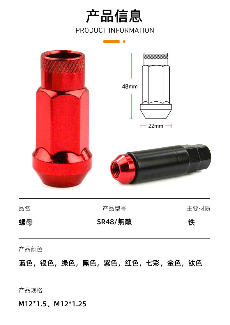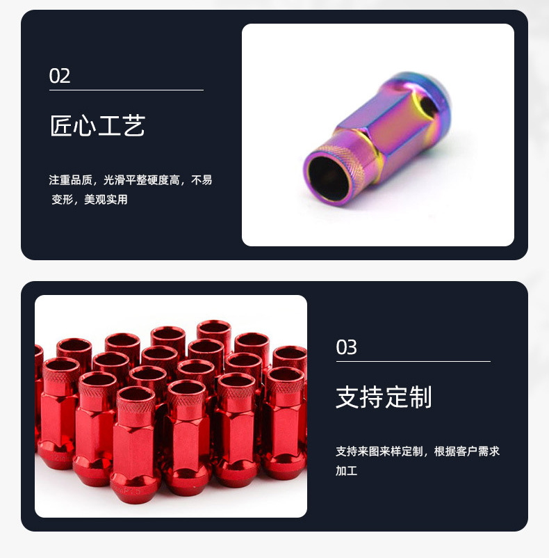 • Customizable Style & Aesthetic Appeal: Available in multiple color options, these lug nuts allow for a personalized touch, adding a custom, vibrant flair to your wheels and enhancing your vehicle’s overall appearance.