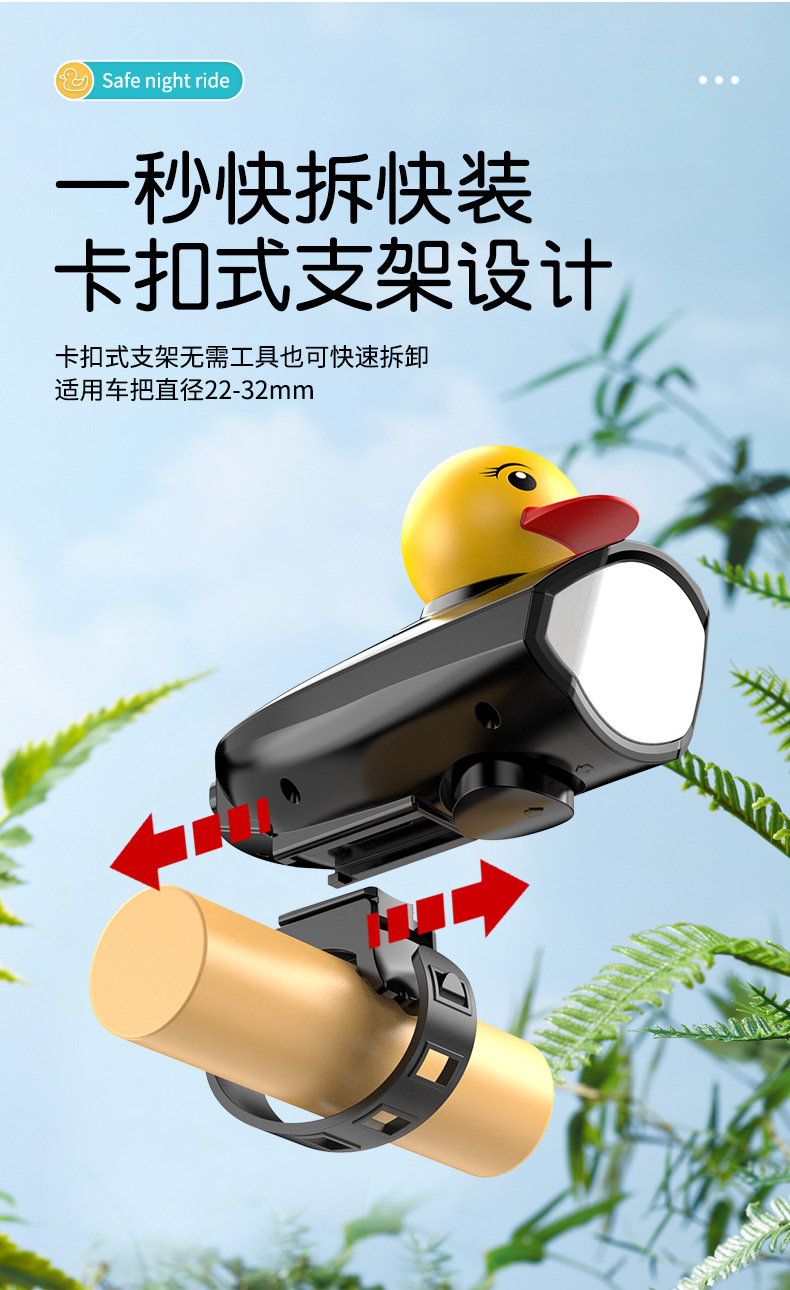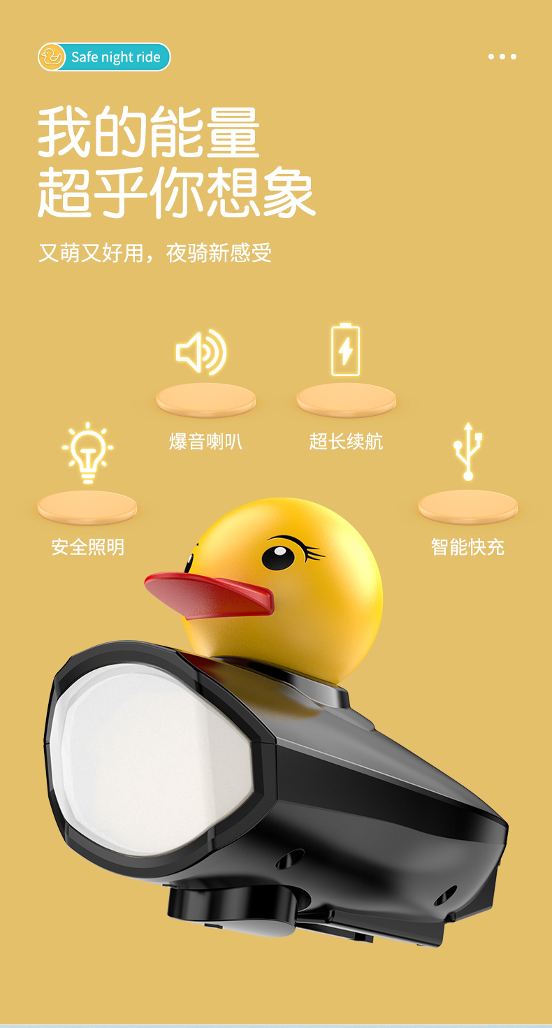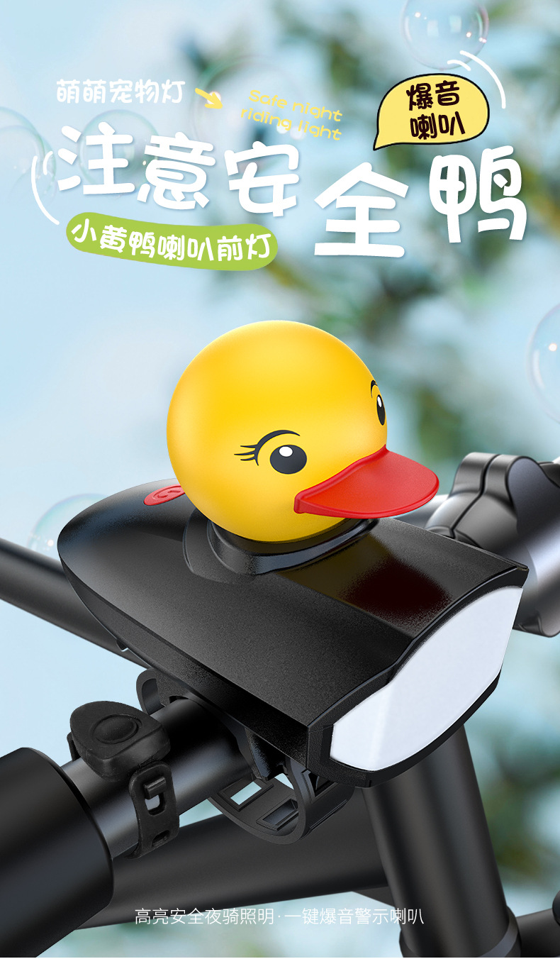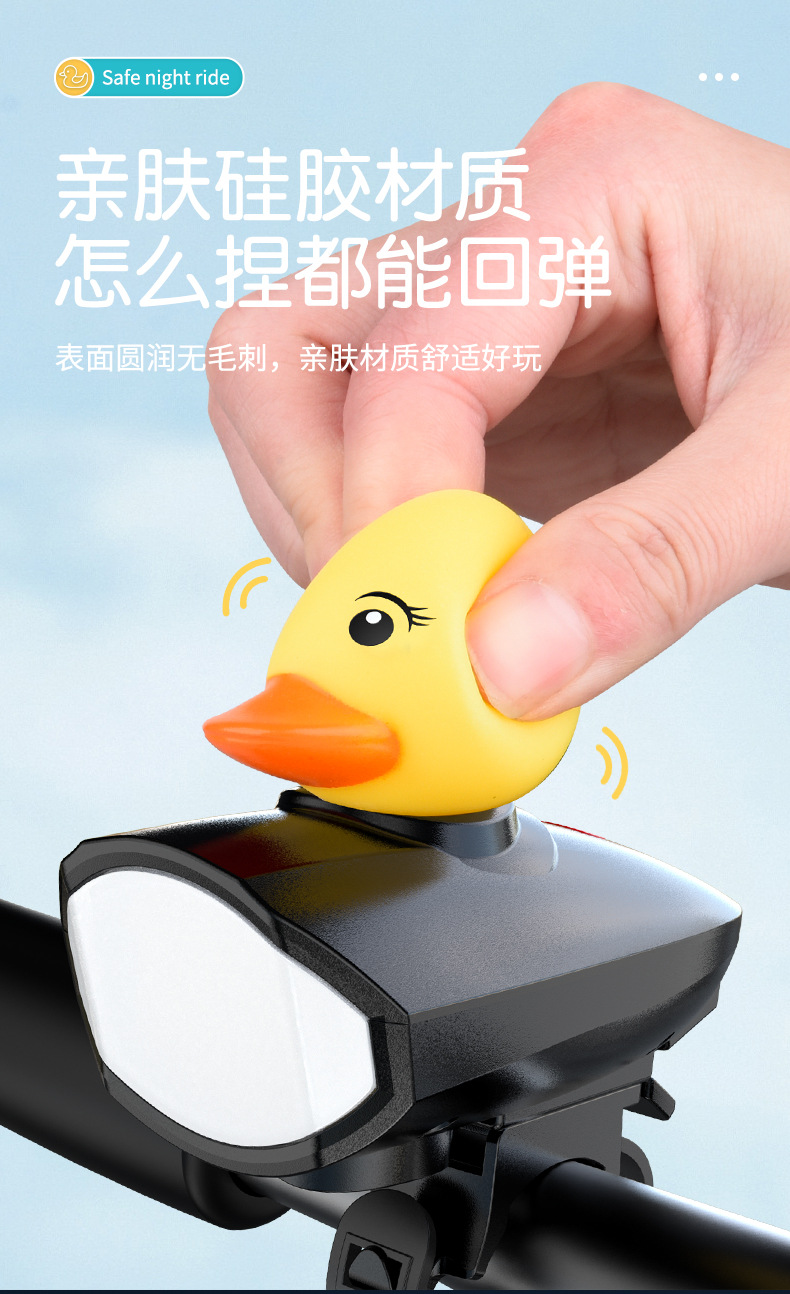 - Performance-Driven Design: Integrates a powerful front light for broad illumination and a high-decibel horn in the adorable little yellow duck design, ensuring visibility and alert functionality during night rides. USB rechargeable for convenience.