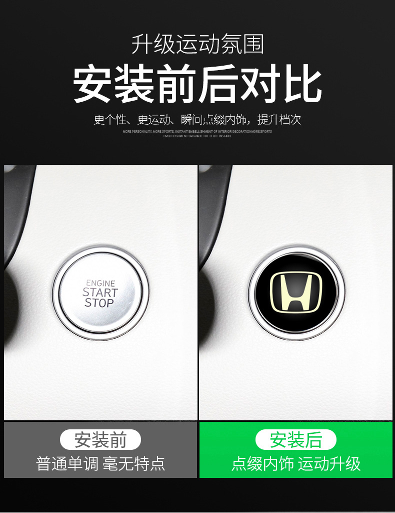 - Direct Fitment: A perfect replacement for car key hole / one-key start button luminous decoration. Compatible with Honda, Volkswagen, Audi and other models as shown in the image.