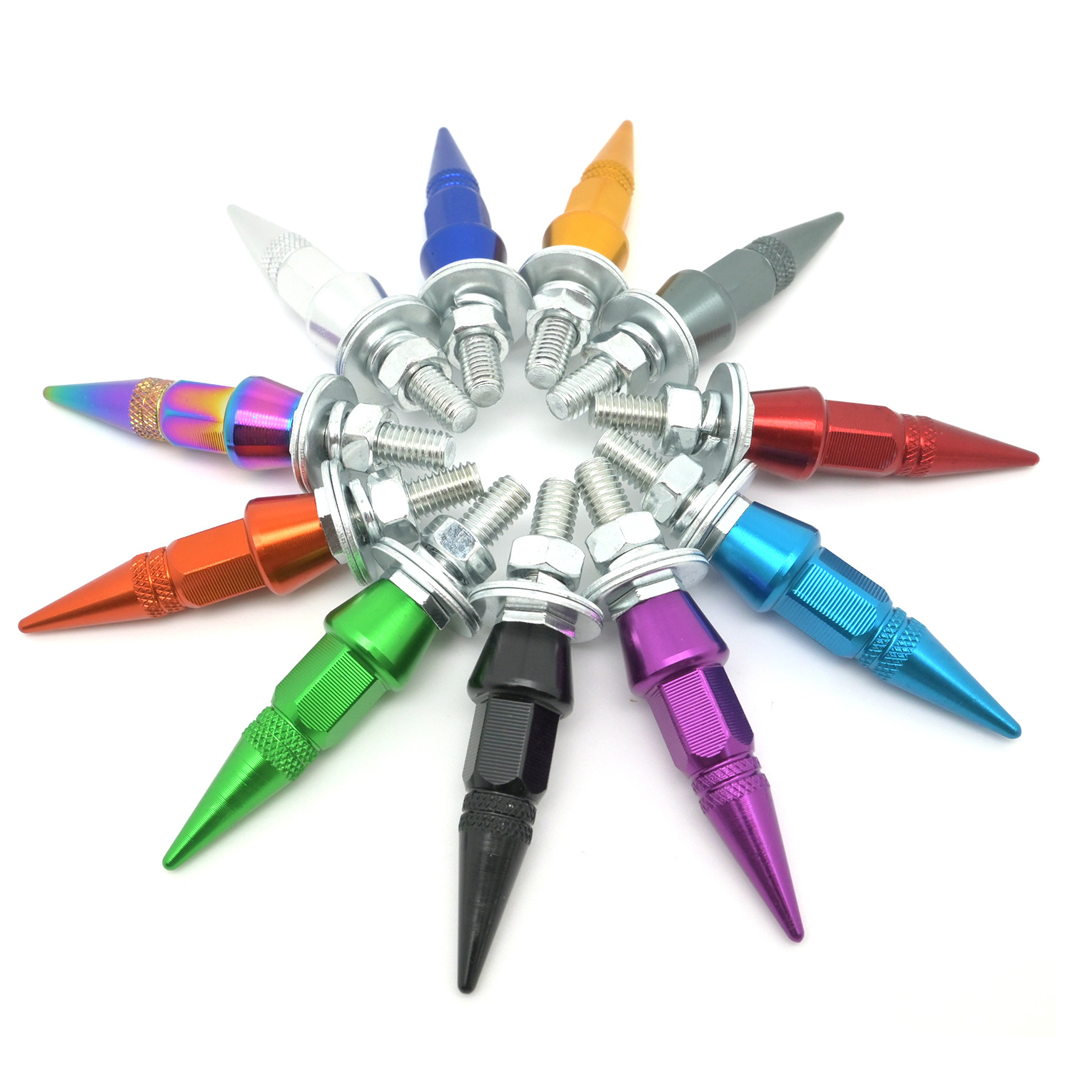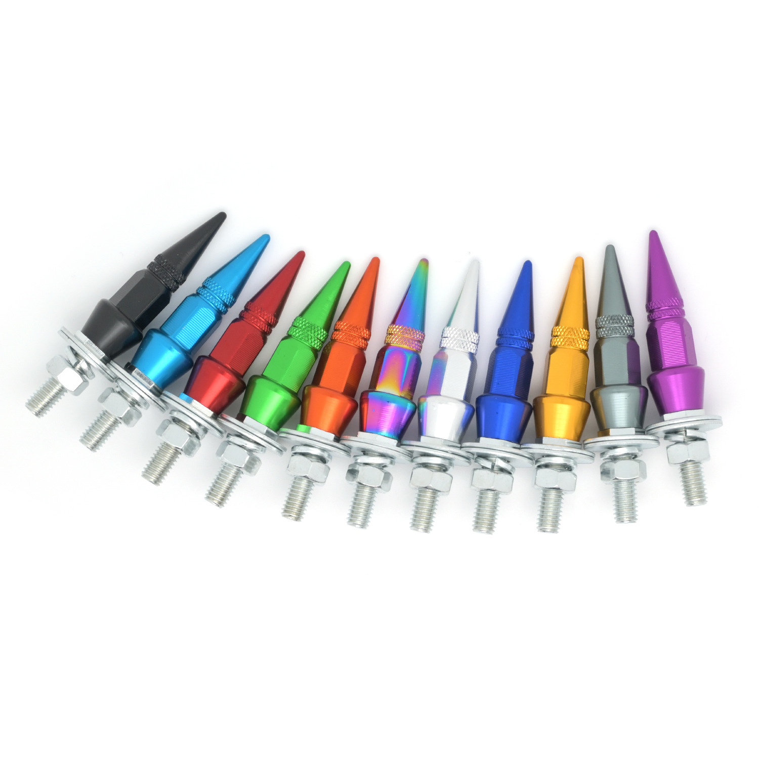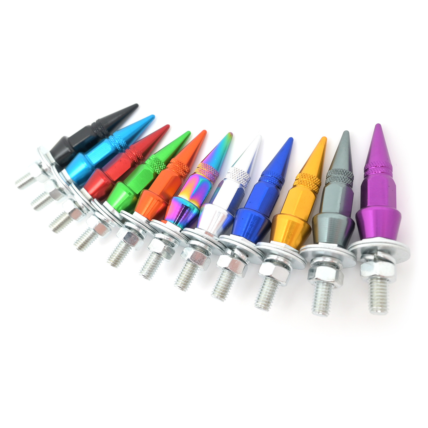- Stylish Pointed Cap Design: Elevate your vehicle’s appearance with these unique pointed cap screws, available in a variety of vibrant colors (Blue, Red, Green, Colorful, Orange, Dark Blue, Gray, Silver, Black, Gold, Purple) to perfectly match or accent your car’s aesthetic.