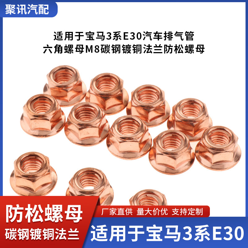 M8 Hex Flange Lock Nuts Carbon Steel Copper Plated for BMW 3 Series E30 Exhaust Pipe A1201420072