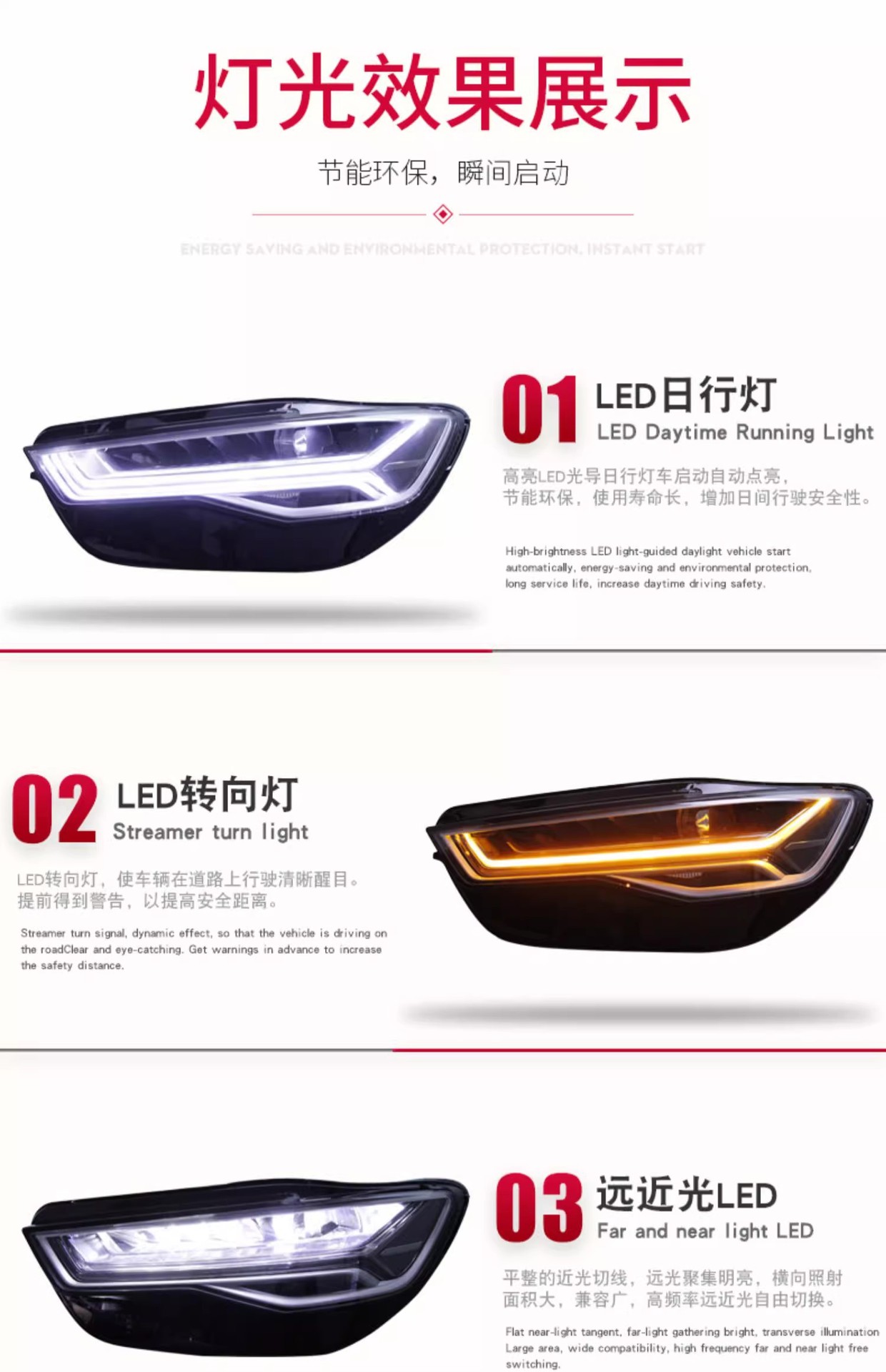 - Enhanced Aesthetics: Upgrade your vehicle’s appearance with a sleek, contemporary design that mimics the latest Audi styling, including dynamic sequential turn signals (if applicable), for a sophisticated upgrade.