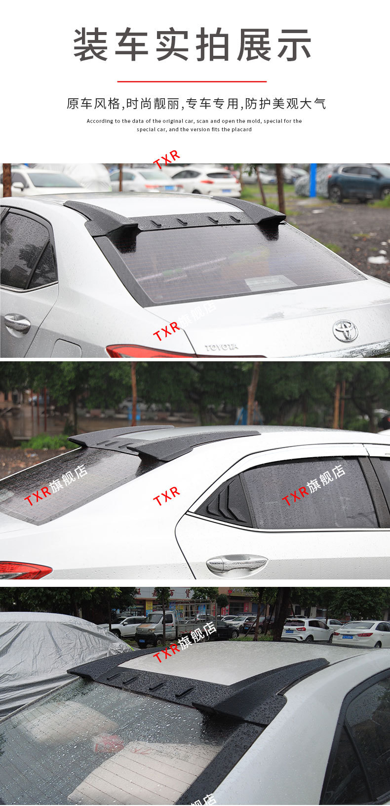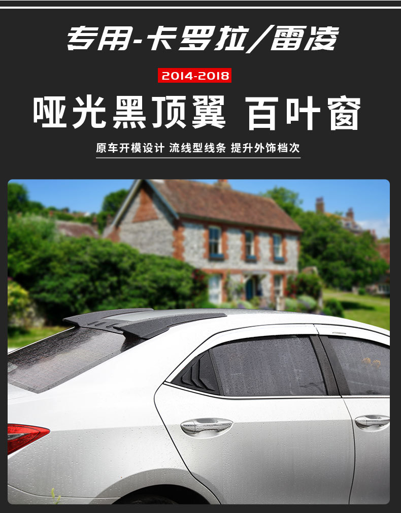 Matte Black Rear Roof Spoiler & Side Window Louvers for Toyota Corolla Levin 2014-2018