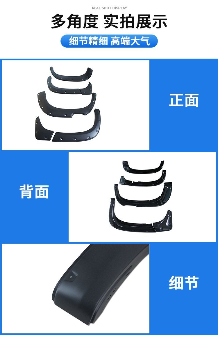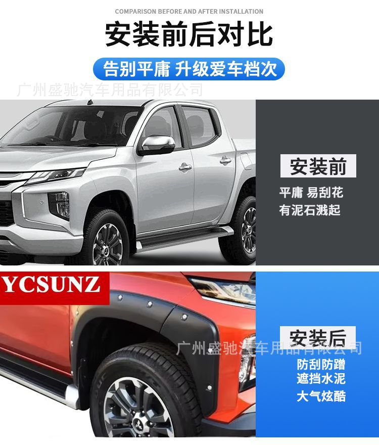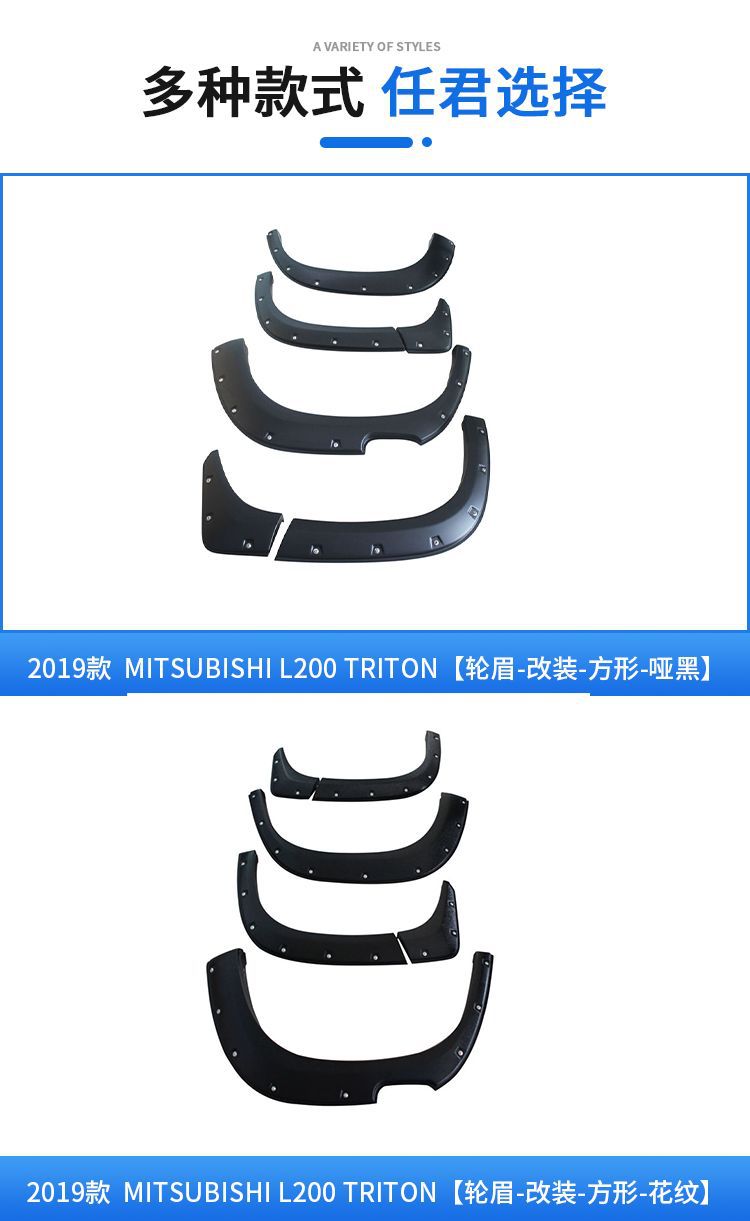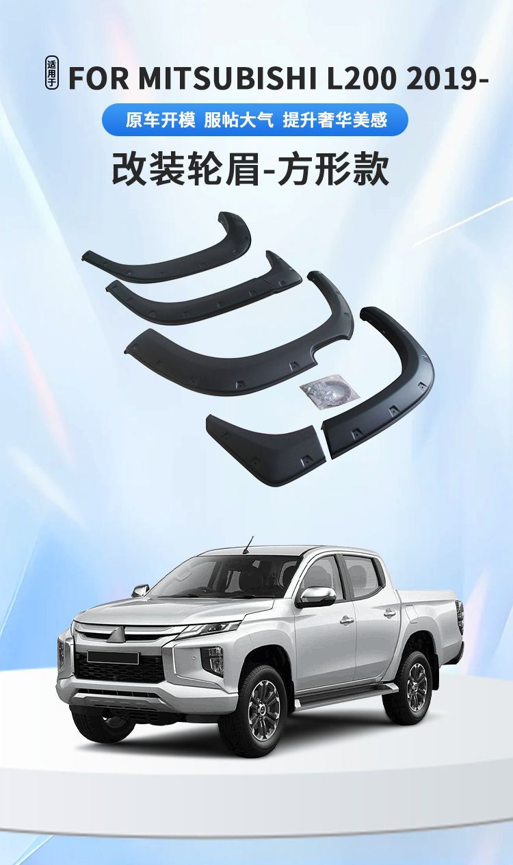 - Complete Package: Includes a full set of square fender flares (6 pieces), exactly as pictured, designed to enhance the profile of your Mitsubishi L200 Triton.