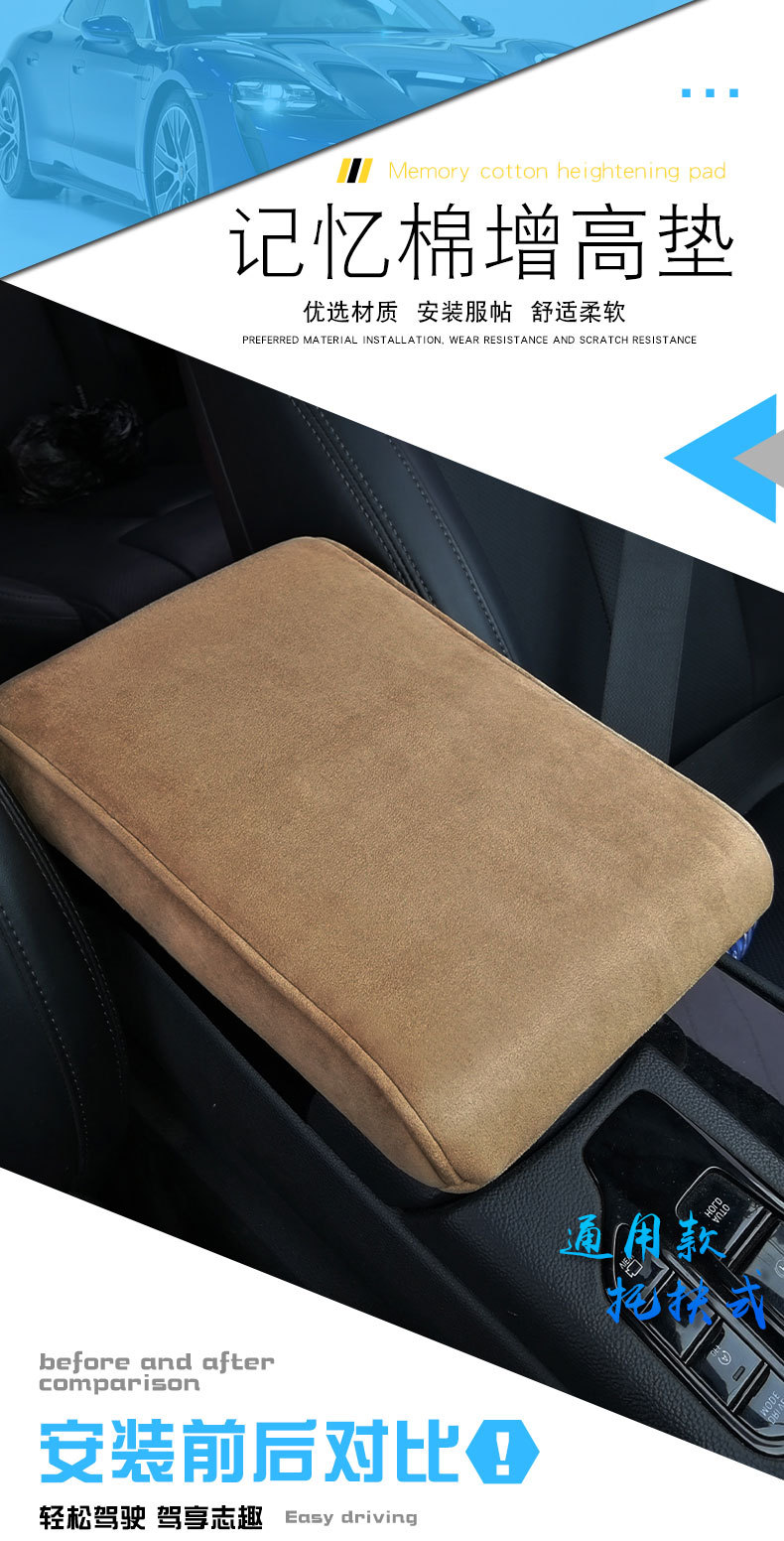 Memory Foam Car Armrest Cushion Universal Suede Leather Armrest Box Pad for Multi-model Cars