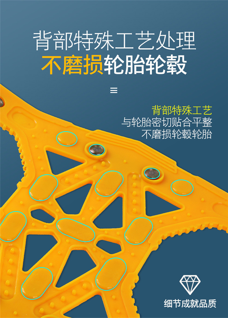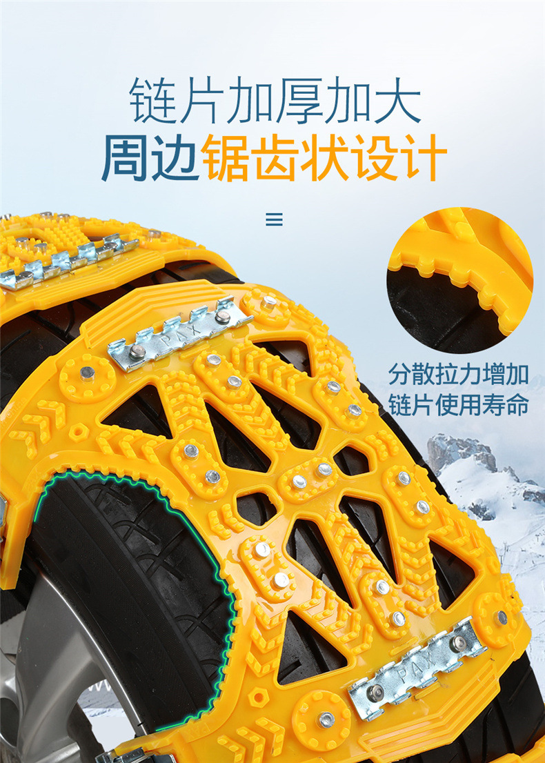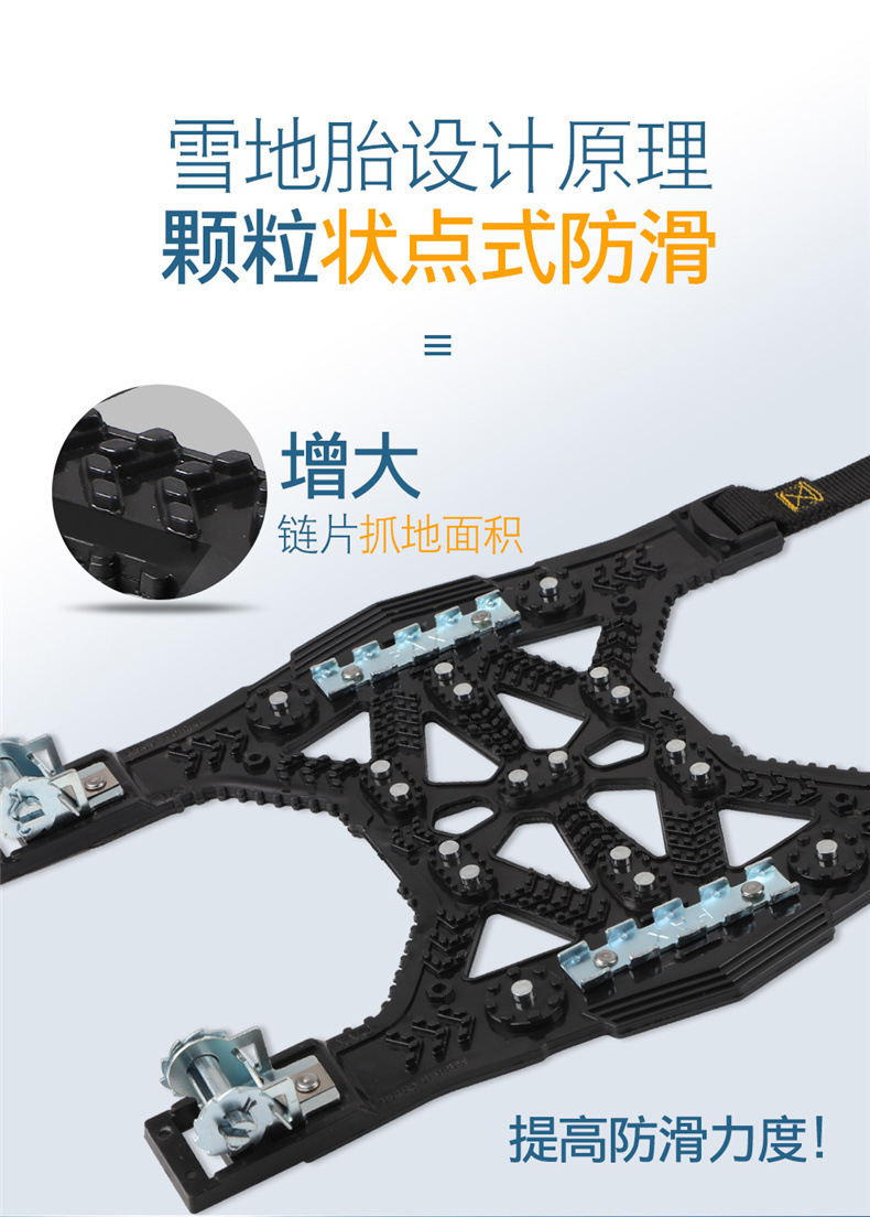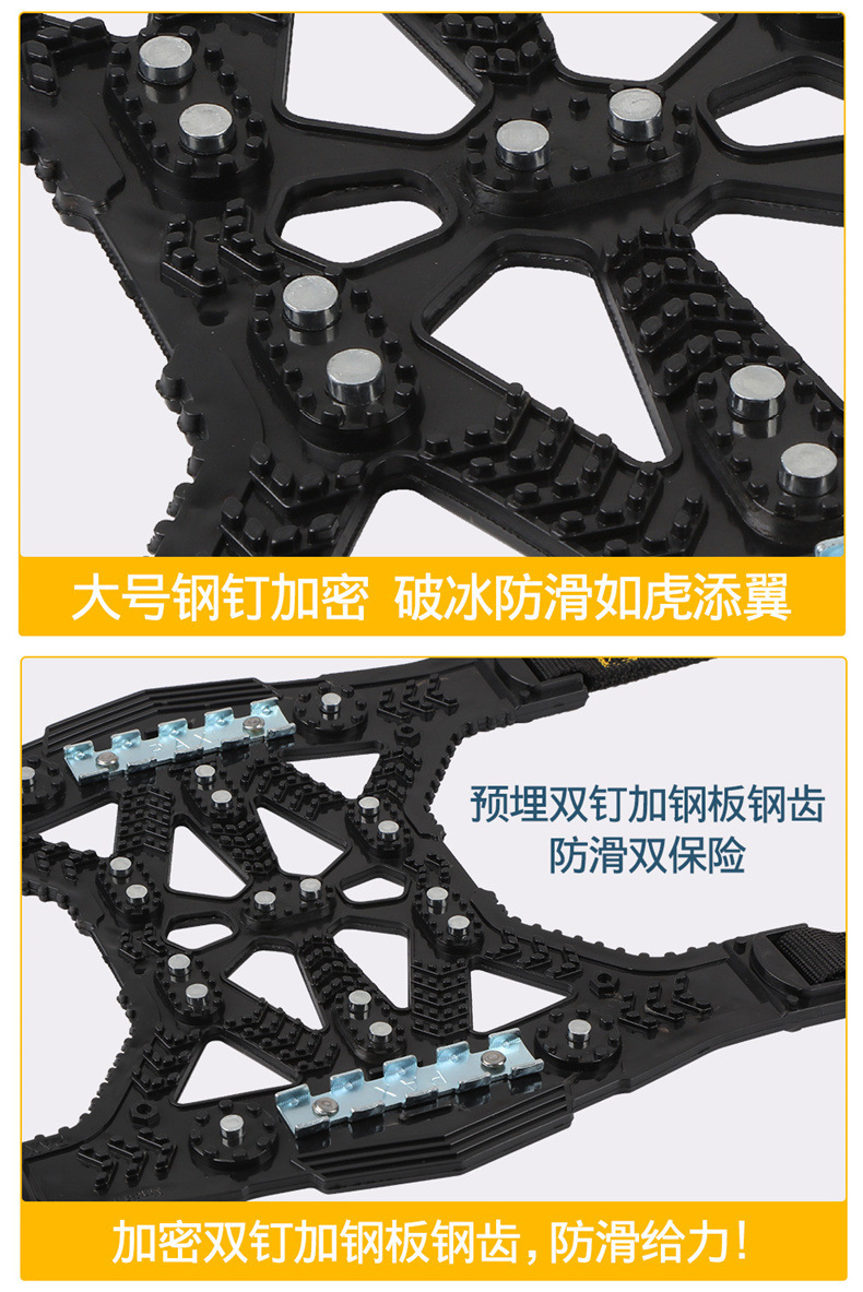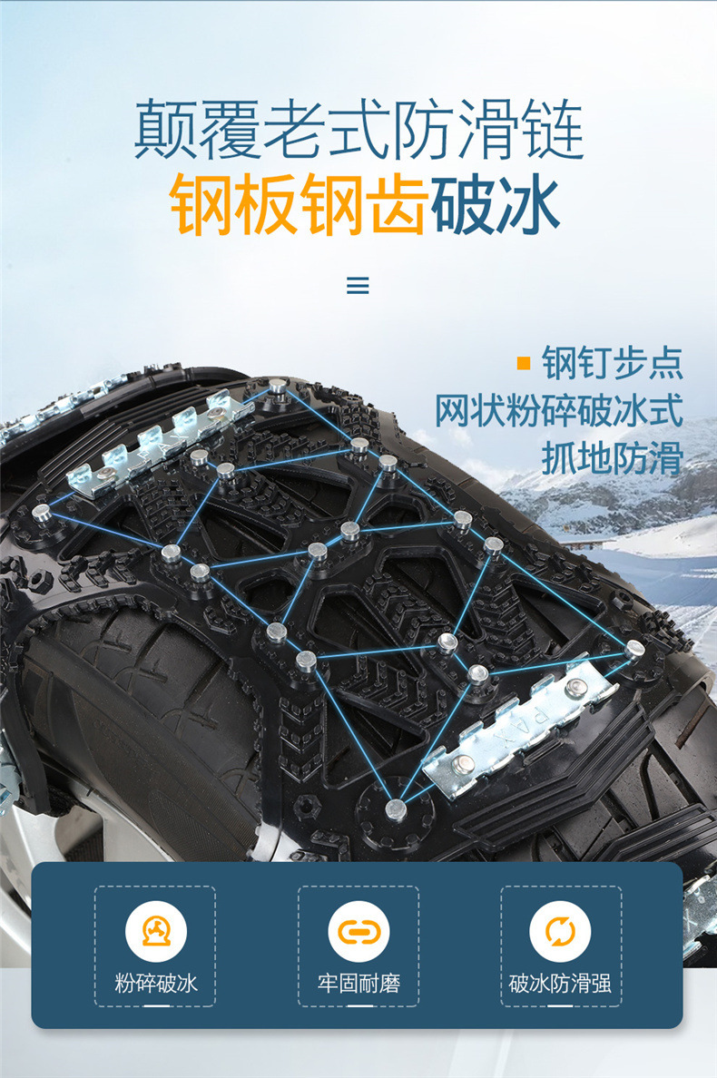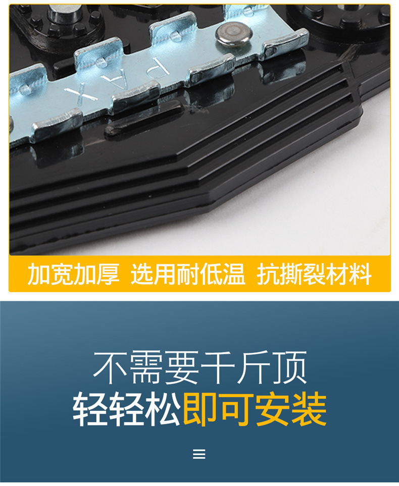- Enhanced Traction: Features a unique steel plate structure that offers superior breaking power on icy surfaces and improved traction in snowy conditions, significantly enhancing driving safety.
