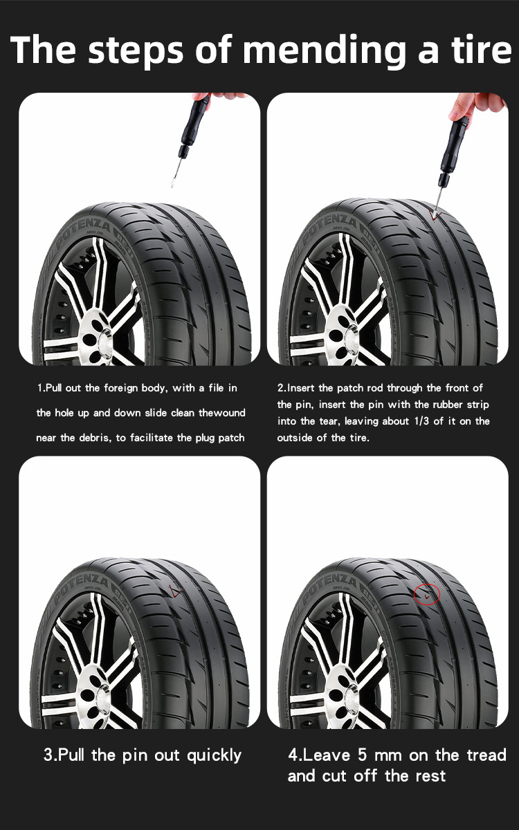 - Complete Package: Includes 1x main repair tool with integrated storage, 1x reamer, 1x insertion fork, and a pack of tire repair rubber strips, exactly as pictured. Please verify fitment details before purchasing.