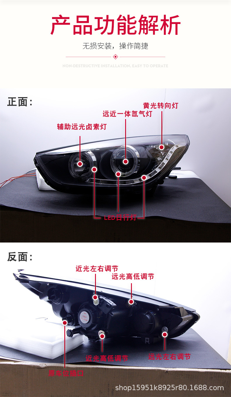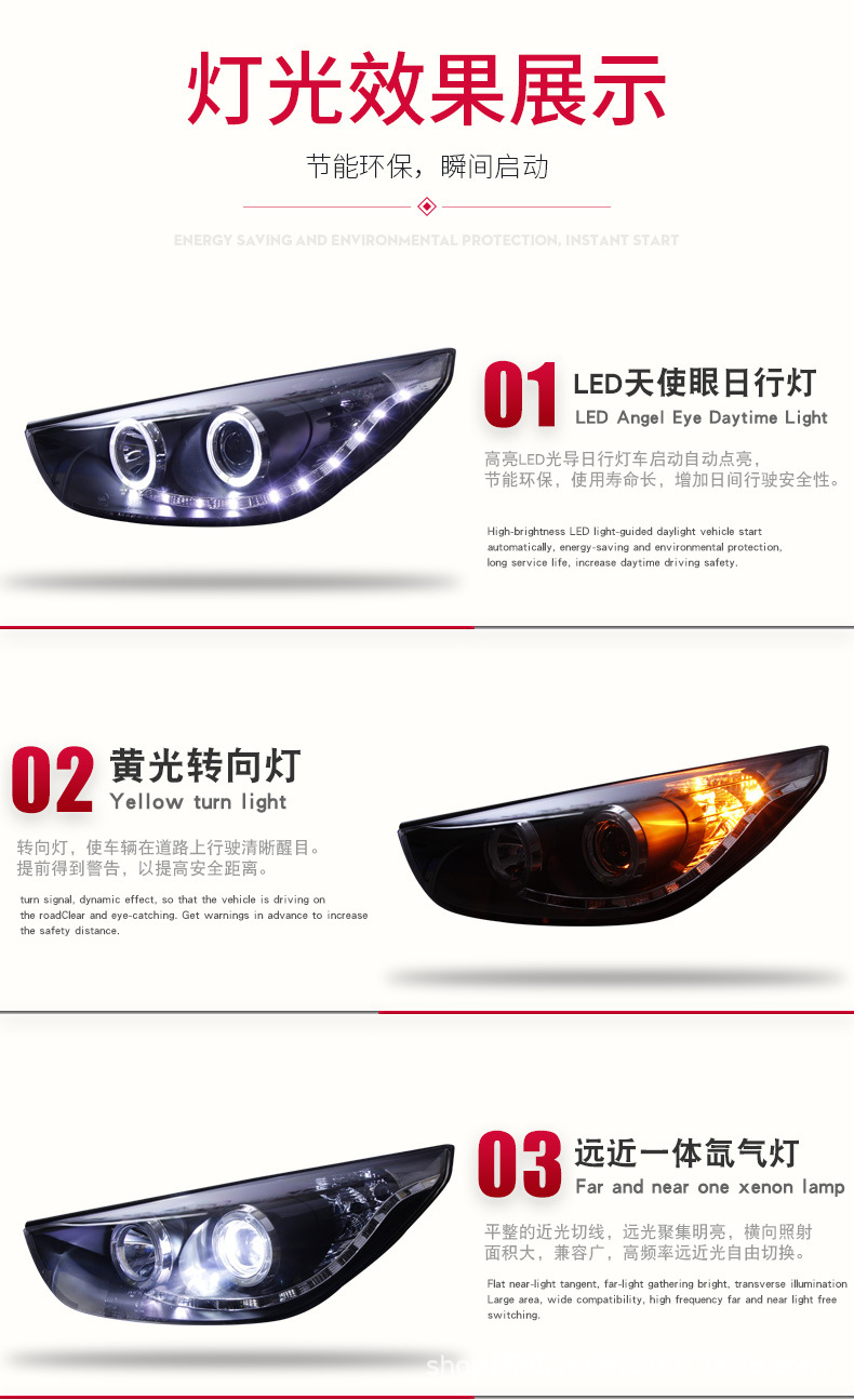 - Stylish Angel Eye Design: Upgrade your vehicle’s aesthetics with a modern Angel Eye look, adding a distinctive and aggressive styling cue that sets your ix35 apart from the rest.