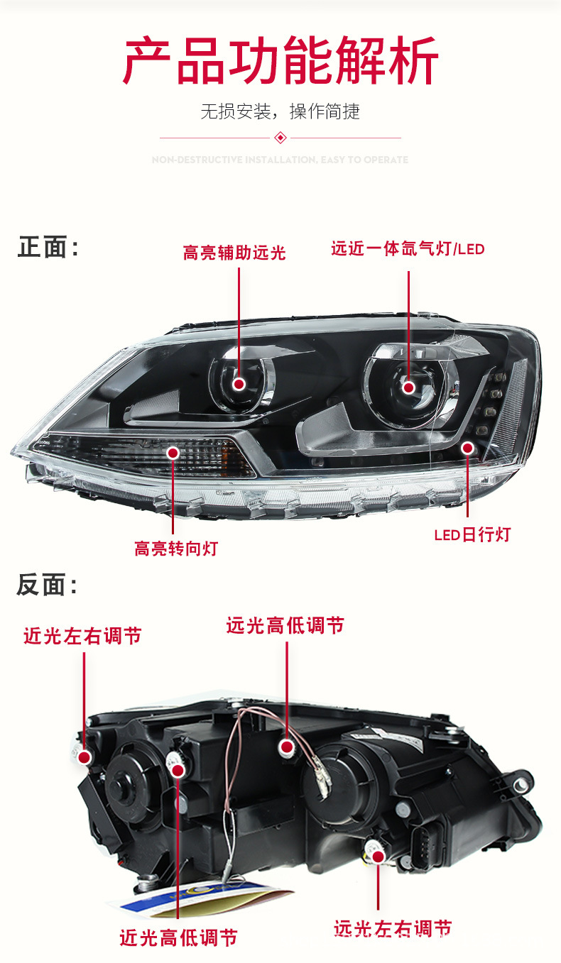 - Modern European Design: Upgrade your vehicle’s aesthetic with a sleek European-style design featuring bright LED daytime running lights and dual projector lenses, adding a sophisticated and modern look to your Sagitar.
