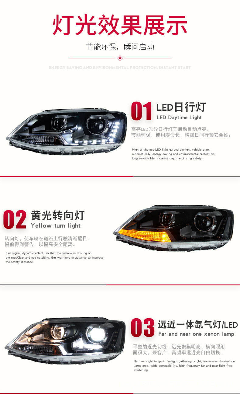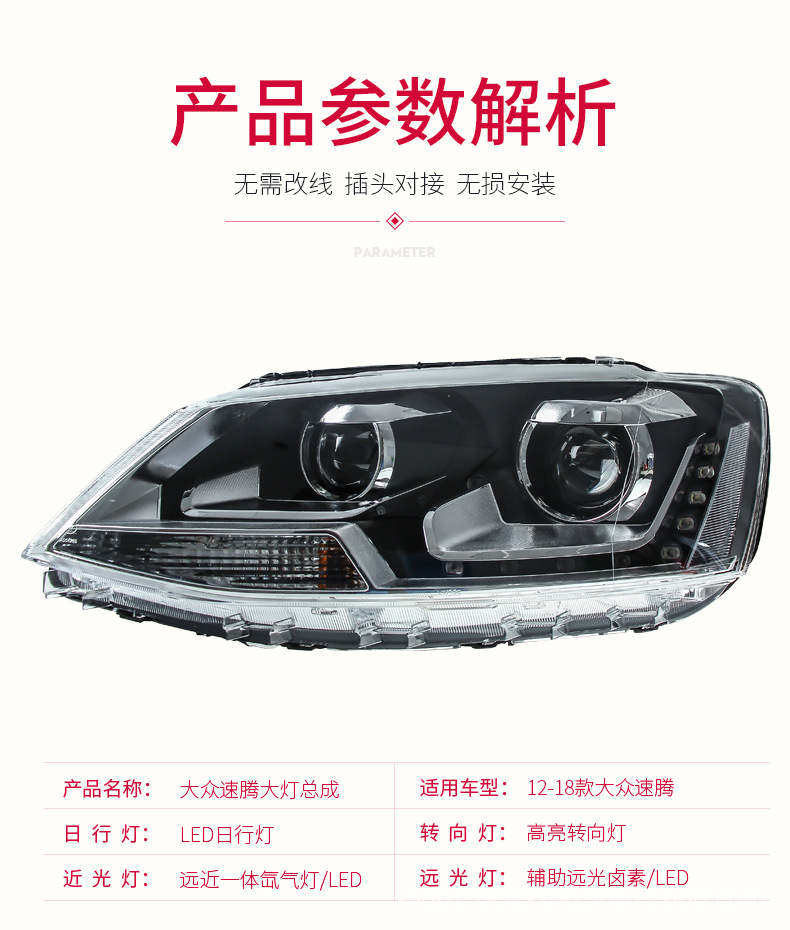 Modified European Style LED Daytime Running Light Dual Projector Xenon Headlight Assembly for VW Sagitar (2012-2018)
