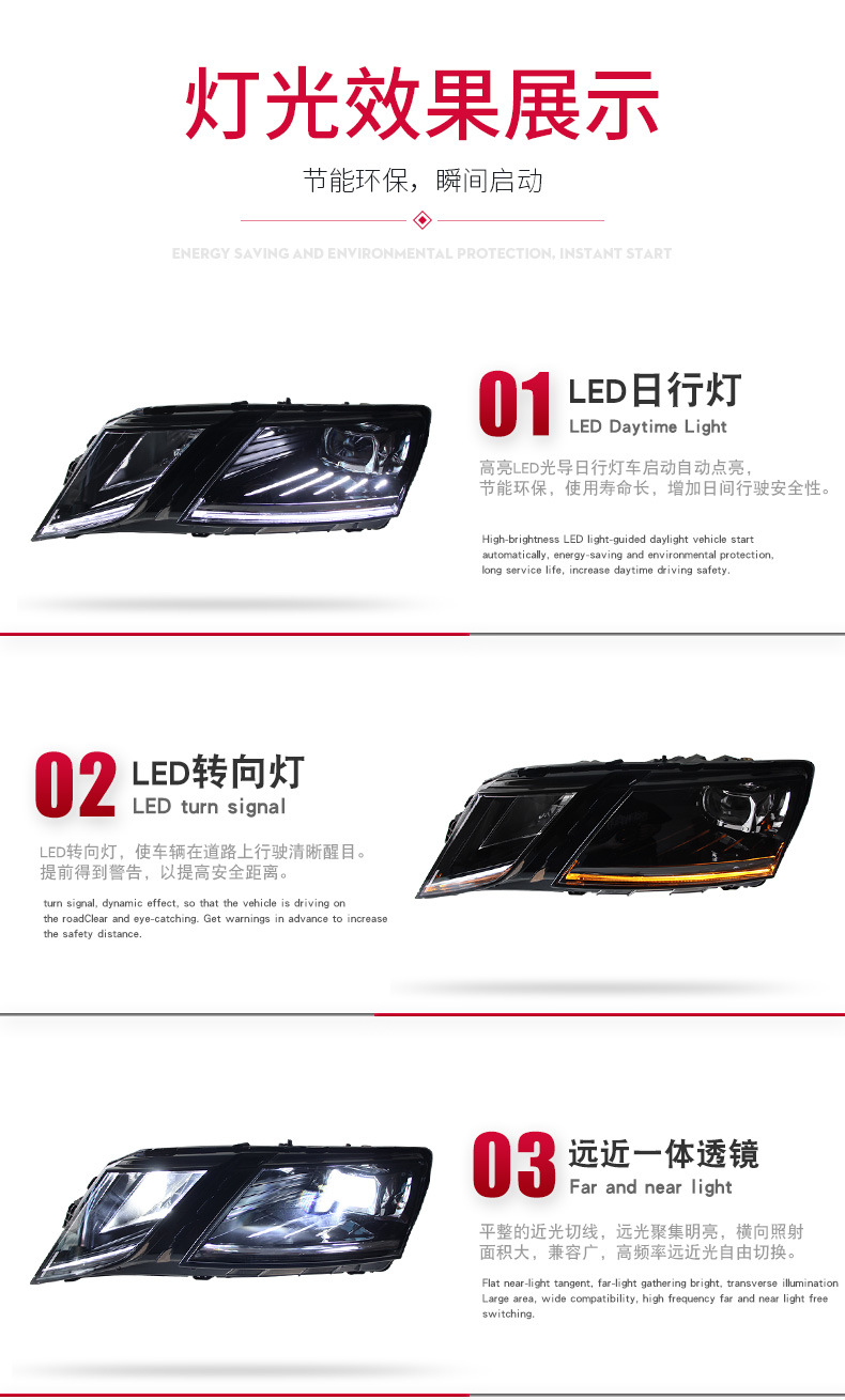 - Upgraded Styling: Integrated LED daytime running lights (DRL) and dynamic turn signals provide a modern, high-end look, significantly enhancing your vehicle’s aesthetic appeal.