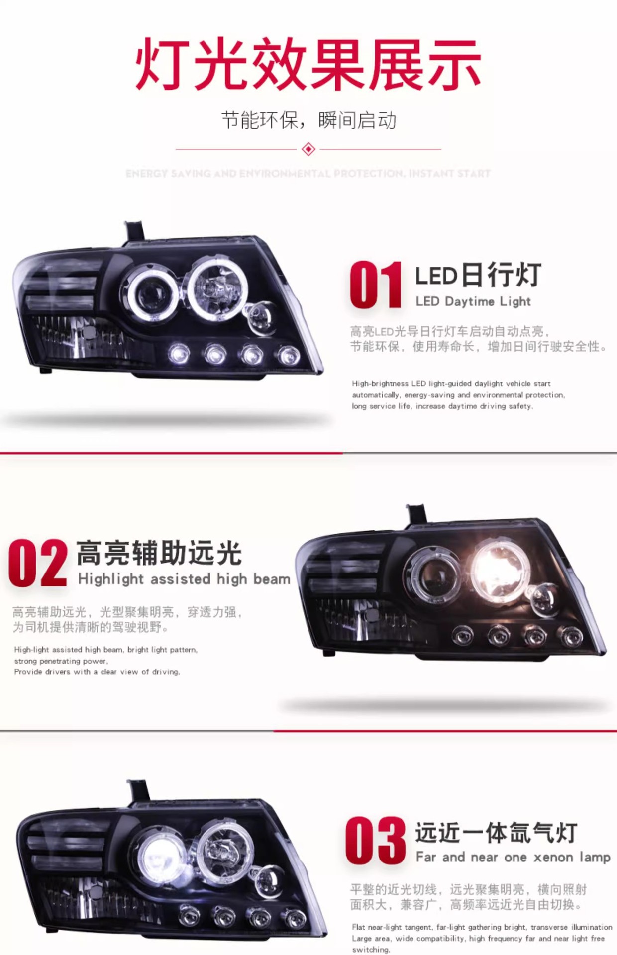 Modified LED Angel Eye DRL Bi-xenon Headlight Assembly for Mitsubishi Pajero V73