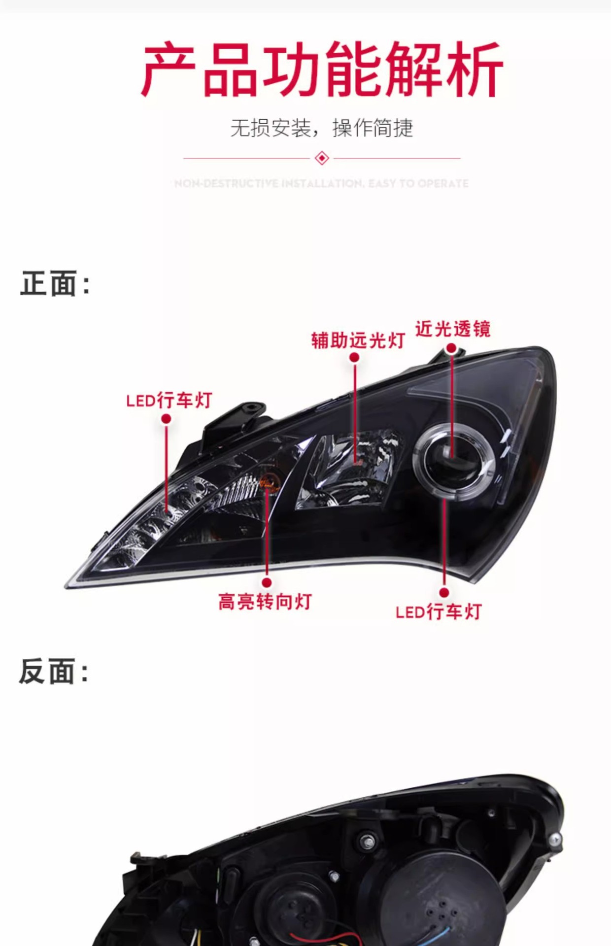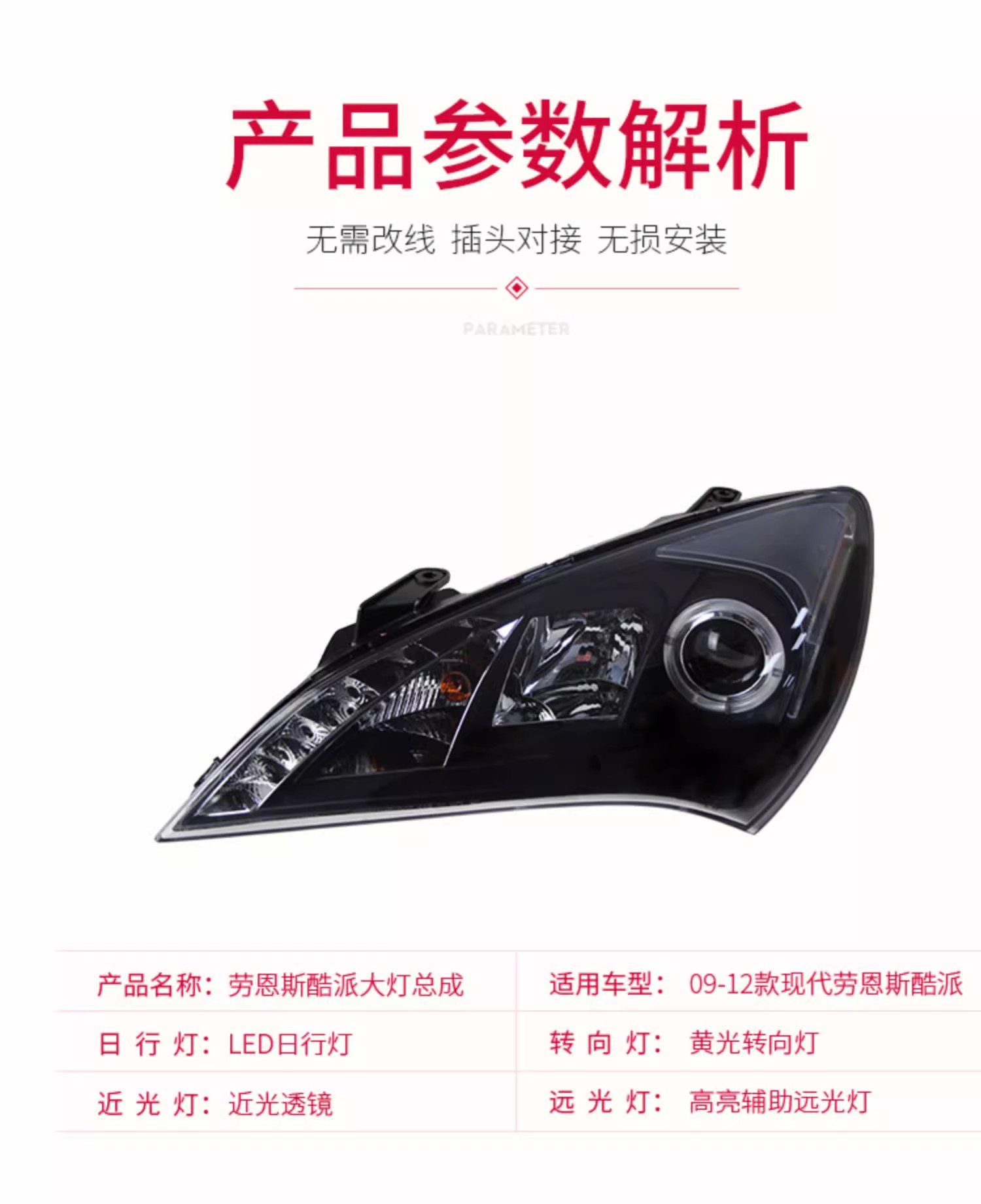 - Precise Fitment: Specifically designed for Hyundai Genesis Coupe models from 2009 to 2012, ensuring a perfect, direct replacement for your original headlight assembly.