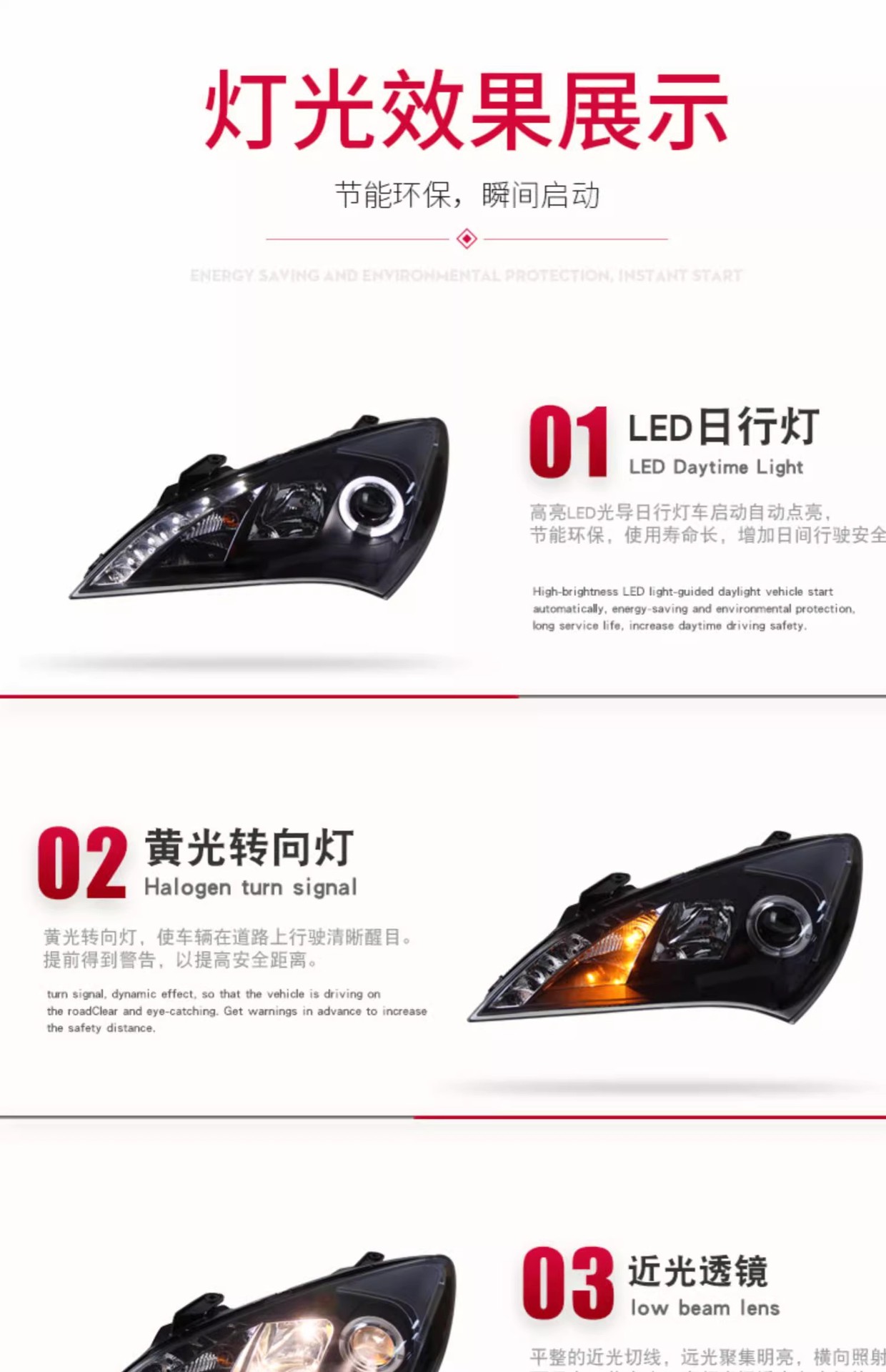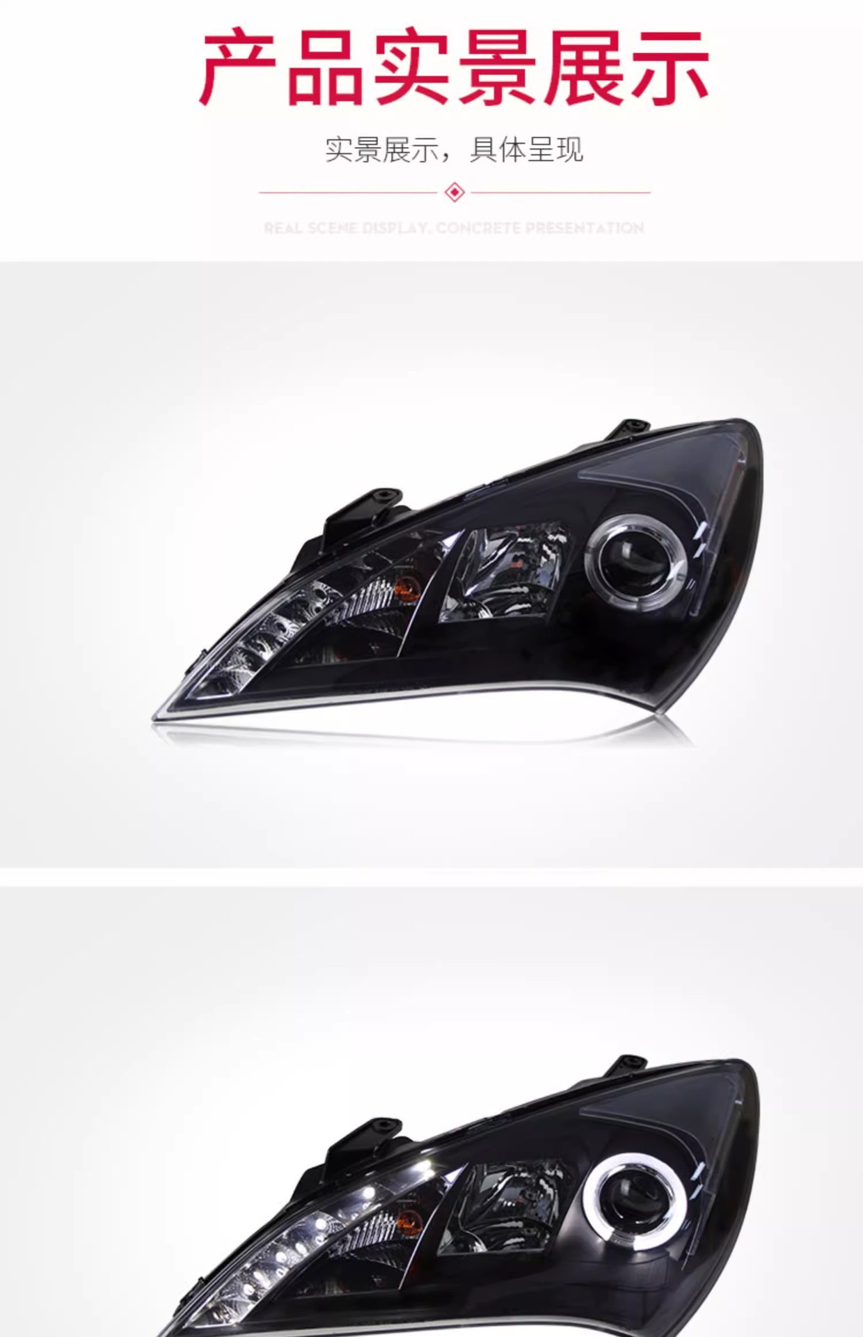 Modified LED Angel Eye DRL Xenon Headlight Assembly for Hyundai Genesis Coupe (2009-2012)