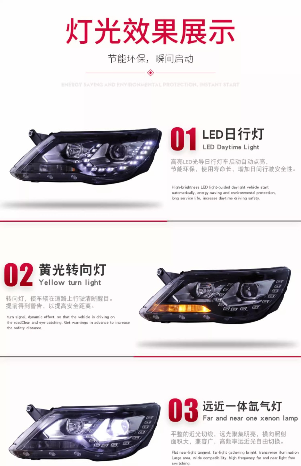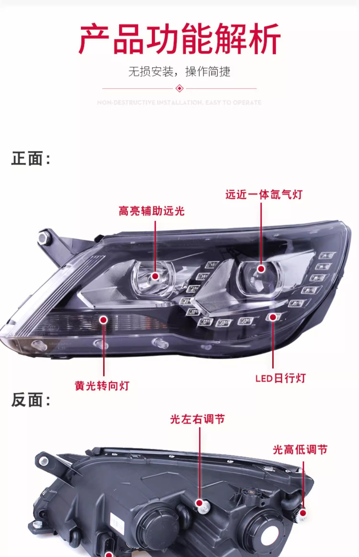 Modified LED DRL Bi-xenon Headlight Assembly for VW Tiguan 2009-2012