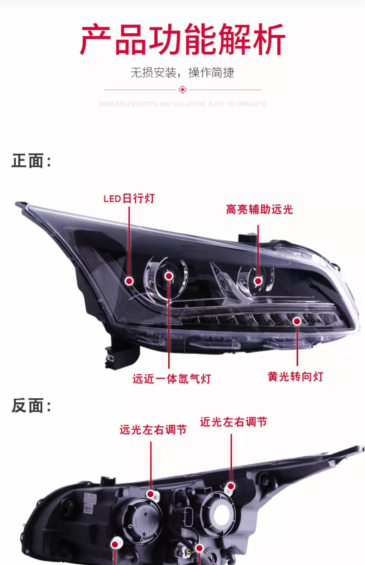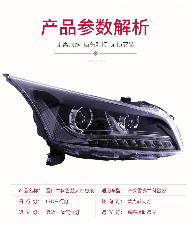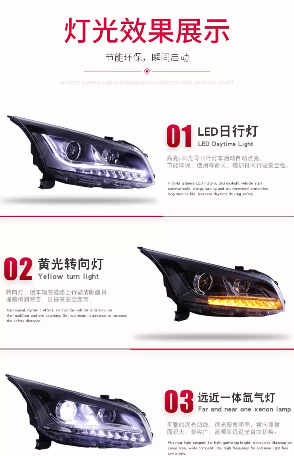 Modified LED DRL Bi-xenon Projector Headlight Assembly for 2015 Chevrolet Cruze Classic