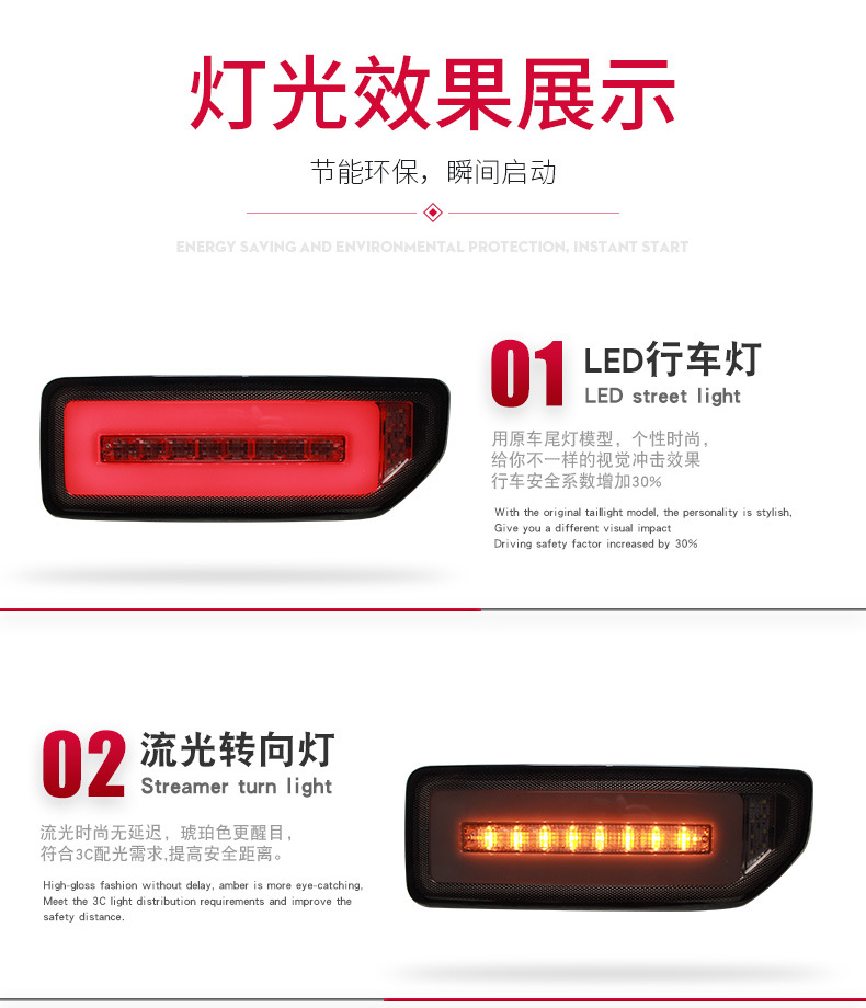- Enhanced Aesthetics & Style: Features an aggressive ‘Big G’ style design with options for smoked, red, or clear lenses, integrating LED running lights and dynamic flowing turn signals for a modern and stylish appearance.