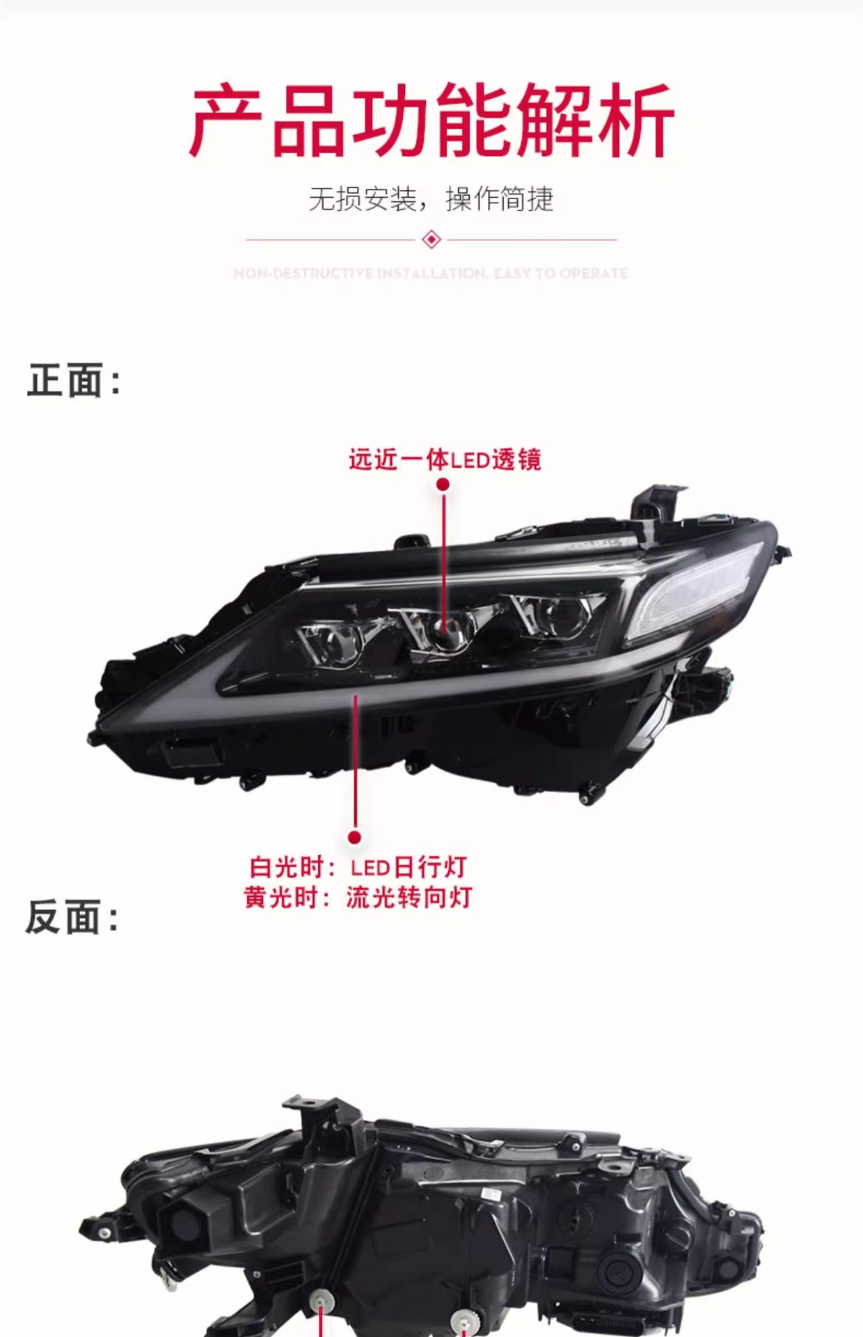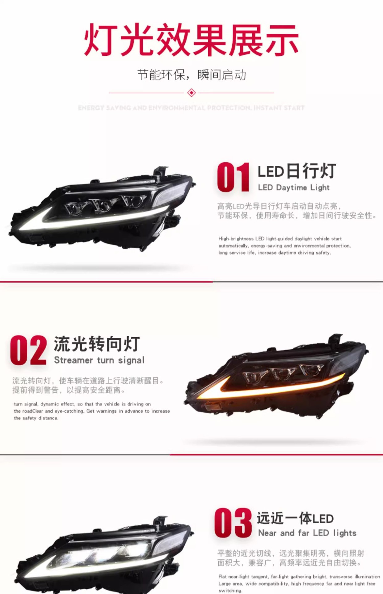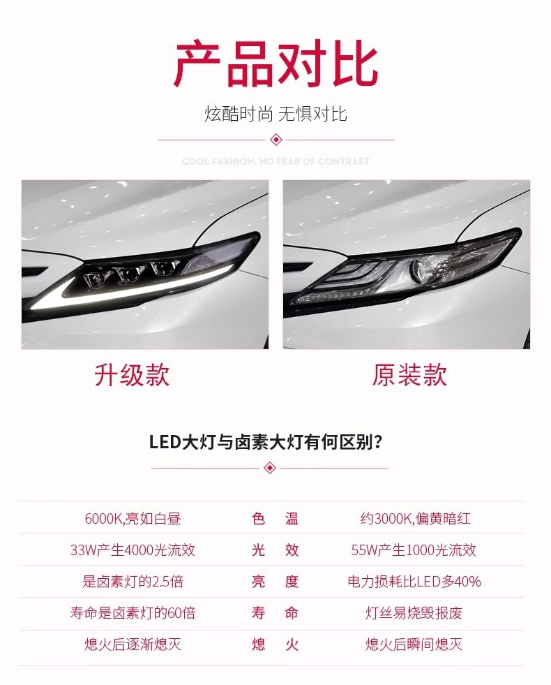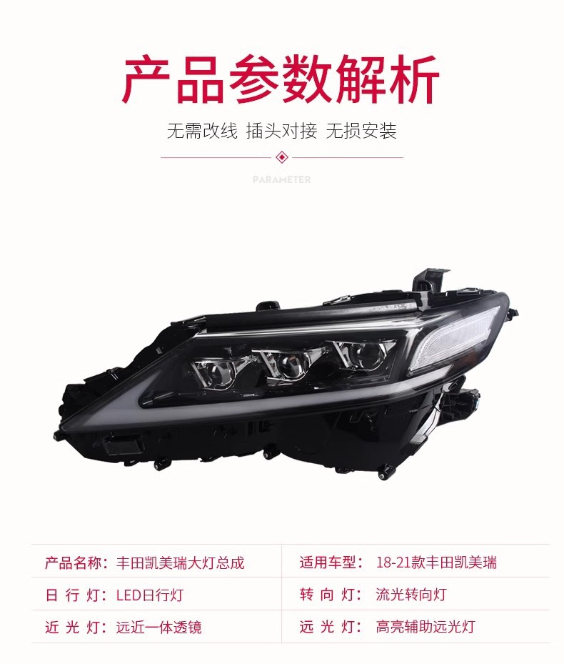 - Enhanced Aesthetics & Modern Design: Upgrade your vehicle’s look with integrated LED Daytime Running Lights (DRL) and dynamic flowing turn signals, adding a sleek, modern, and distinctive appearance to your Camry.