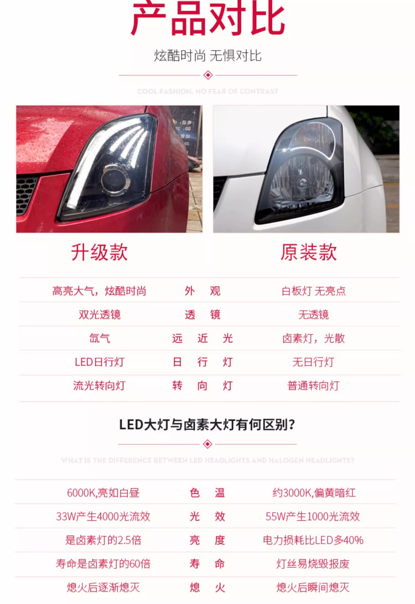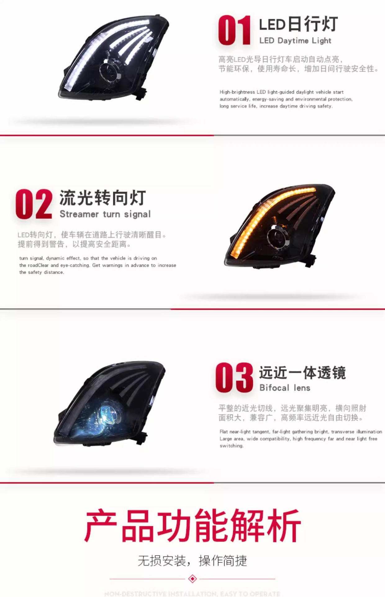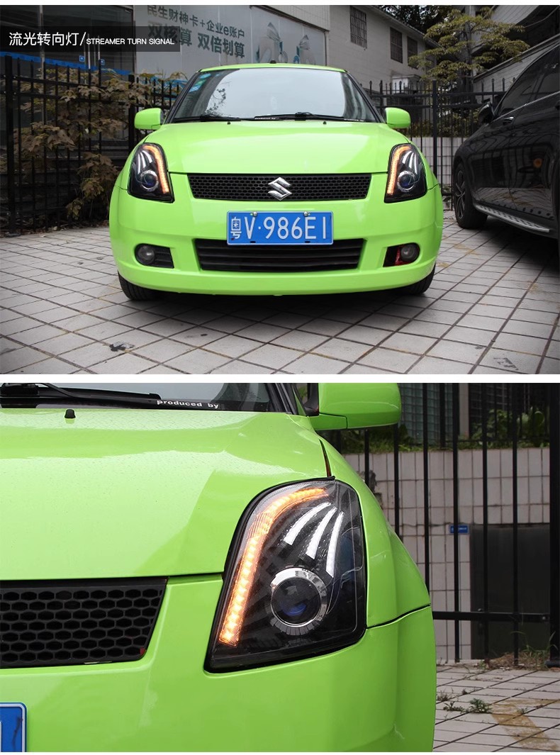 Modified LED DRL Flowing Turn Signal Projector Xenon Headlight Assembly for Suzuki Swift (2005-2016)