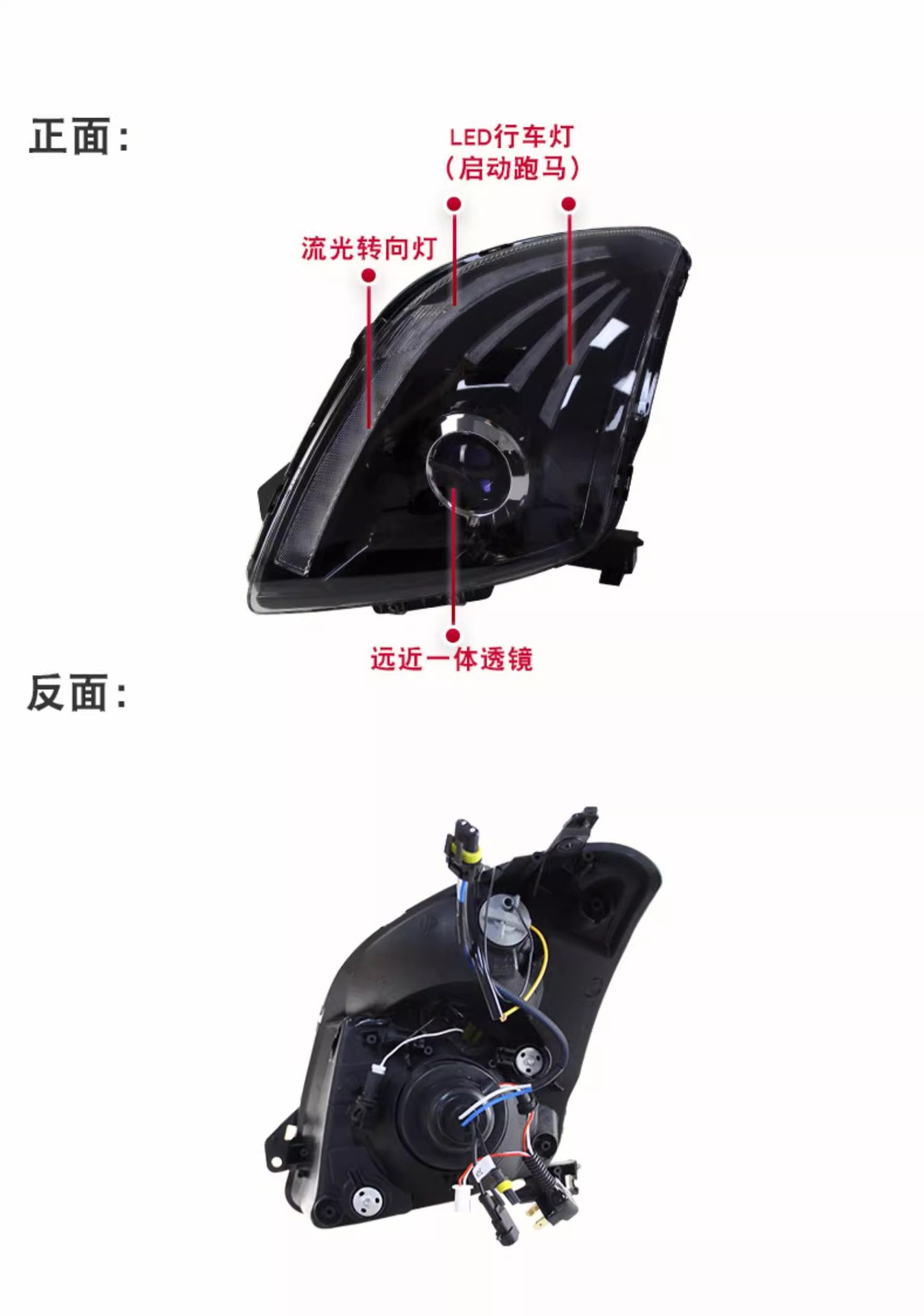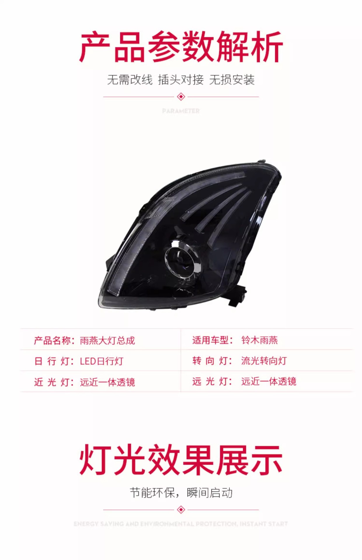 - Enhanced Aesthetics & Style: Upgrade your vehicle’s appearance with a modern headlight assembly featuring integrated LED Daytime Running Lights (DRL) and dynamic flowing turn signals, giving your Suzuki Swift a distinctive and updated look.