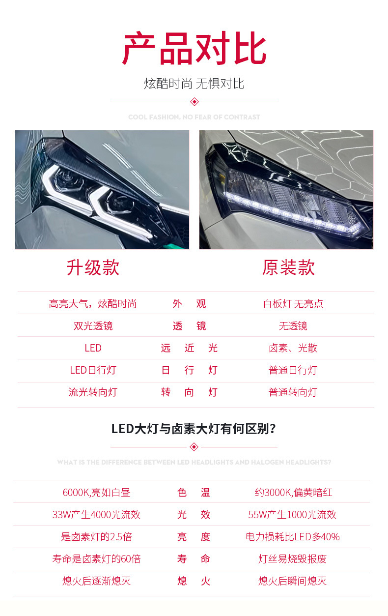 - Modern Design & Style Boost: Upgrade your vehicle’s appearance with a sleek, modern design featuring bright LED daytime running lights and dynamic flowing turn signals for a distinctive, eye-catching look.