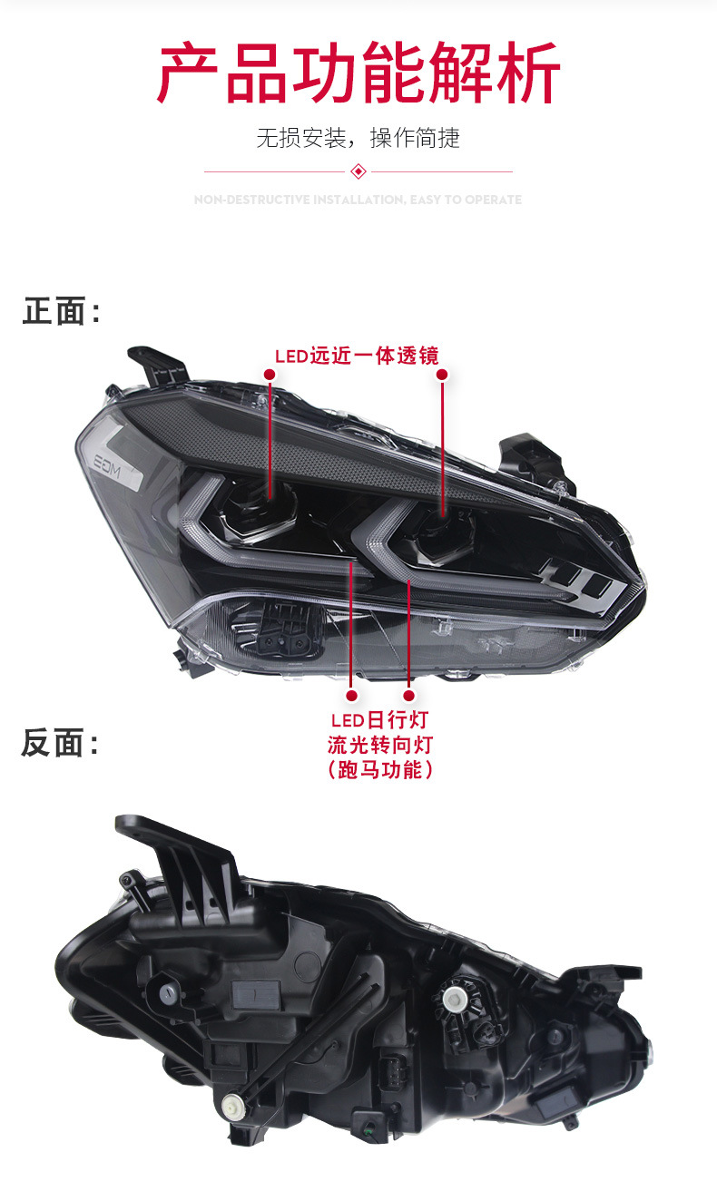 - Easy Installation & Enhanced Visibility: Direct replacement for factory headlights, offering a straightforward installation process without complex modifications. Integrated LED projector provides superior light output and improved road visibility.