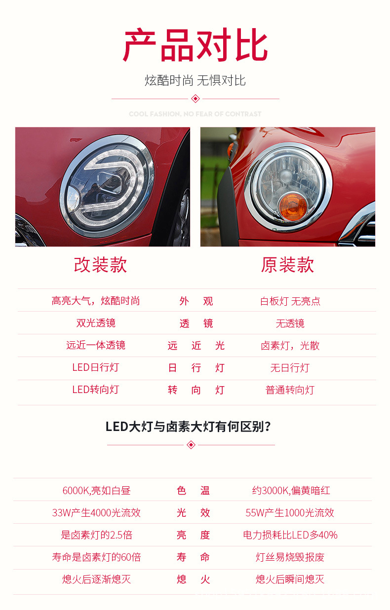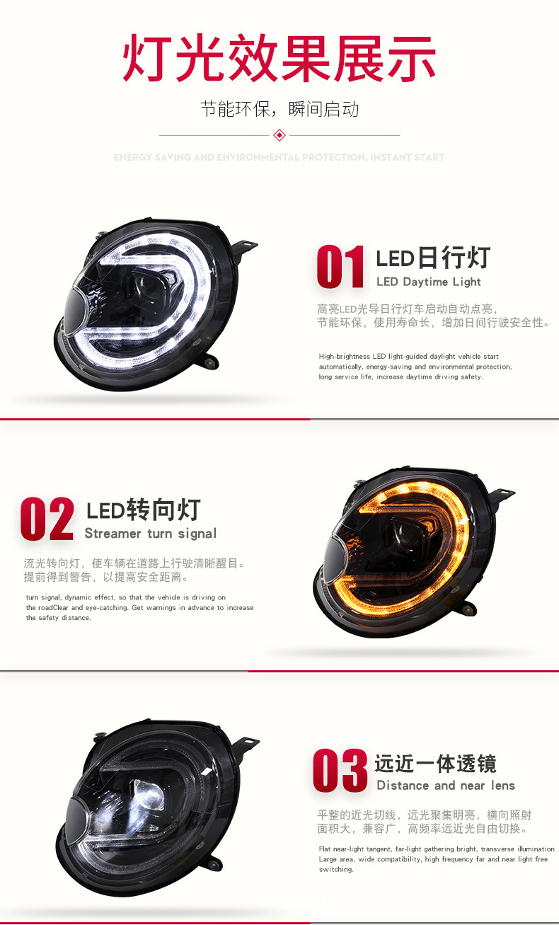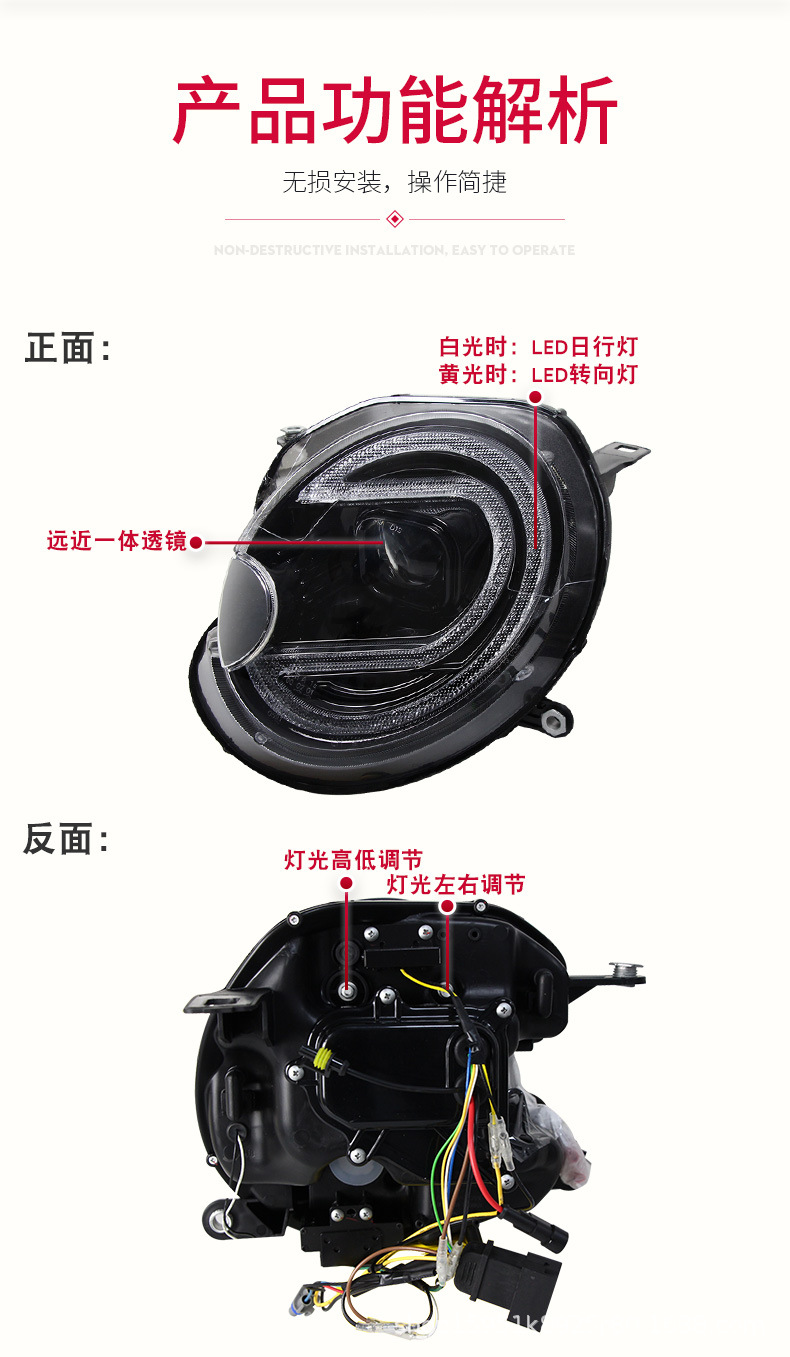 - Modern LED DRL Design: Upgrade your Mini’s aesthetics with integrated LED Daytime Running Lights, providing a contemporary look and increased on-road safety.