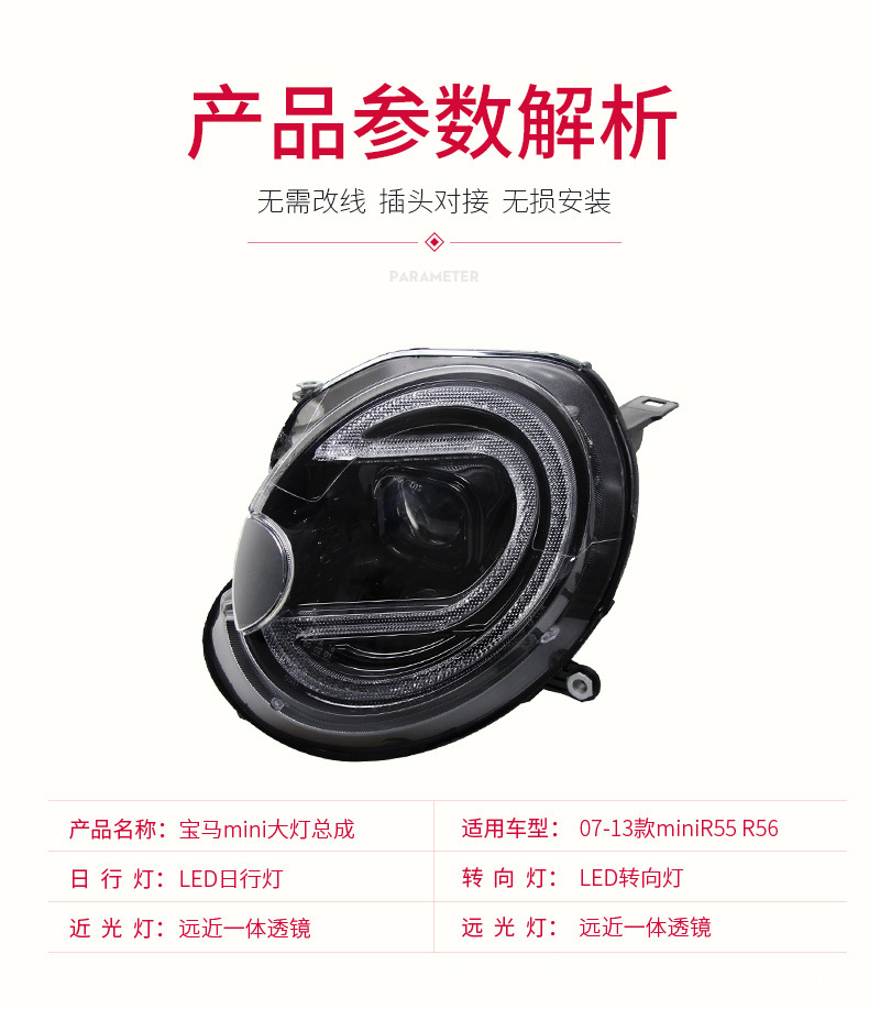 Modified LED DRL Projector Xenon Headlight Assembly for BMW Mini R56 R55 (2007-2013)
