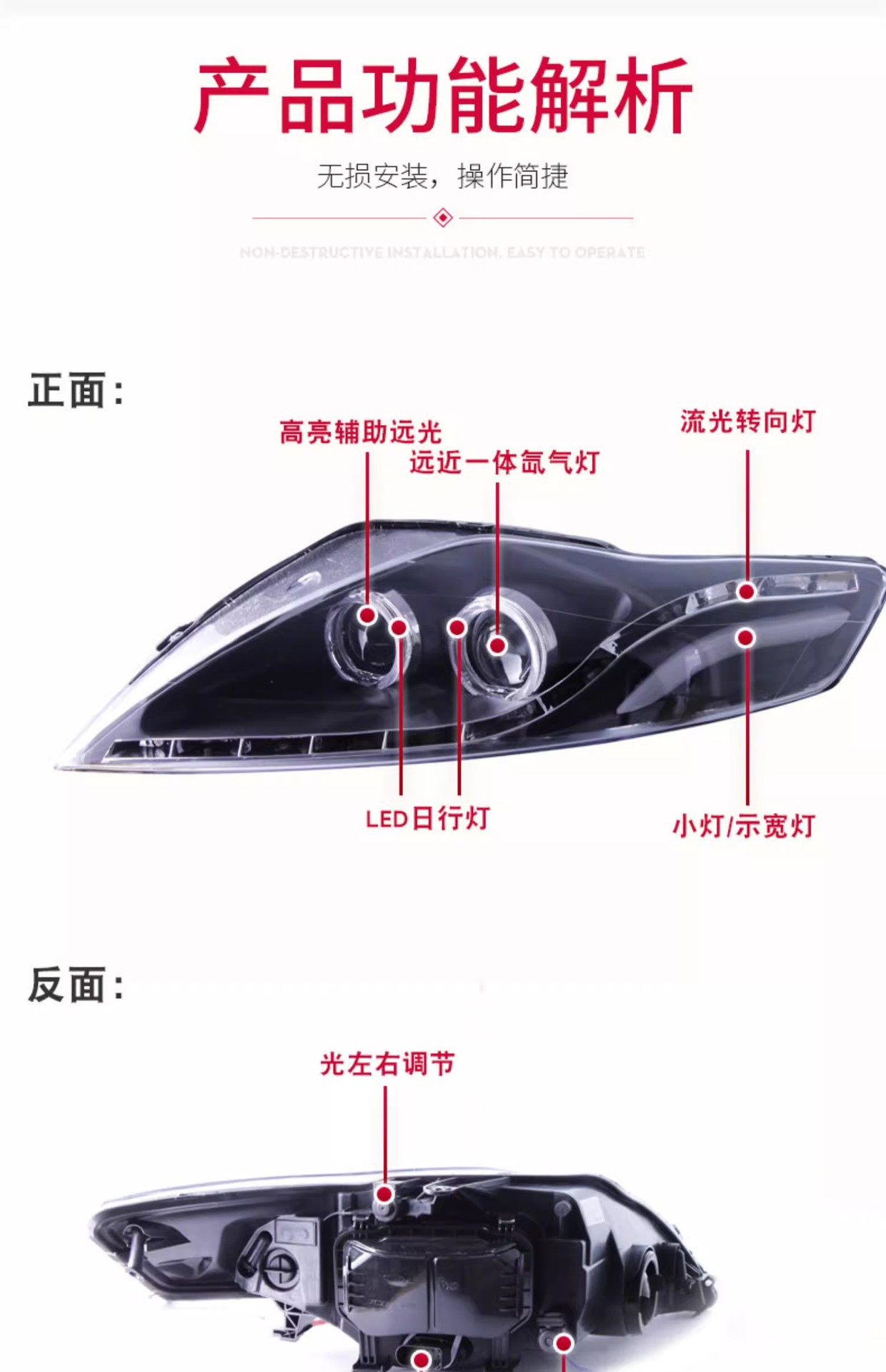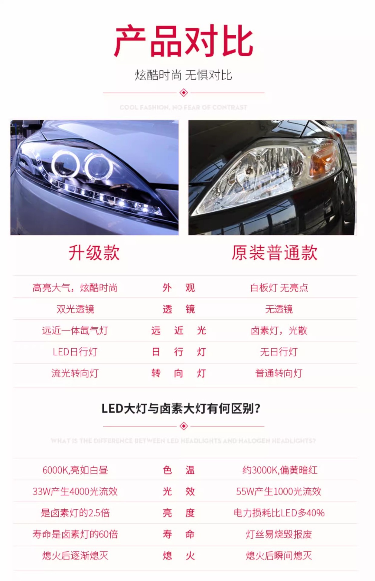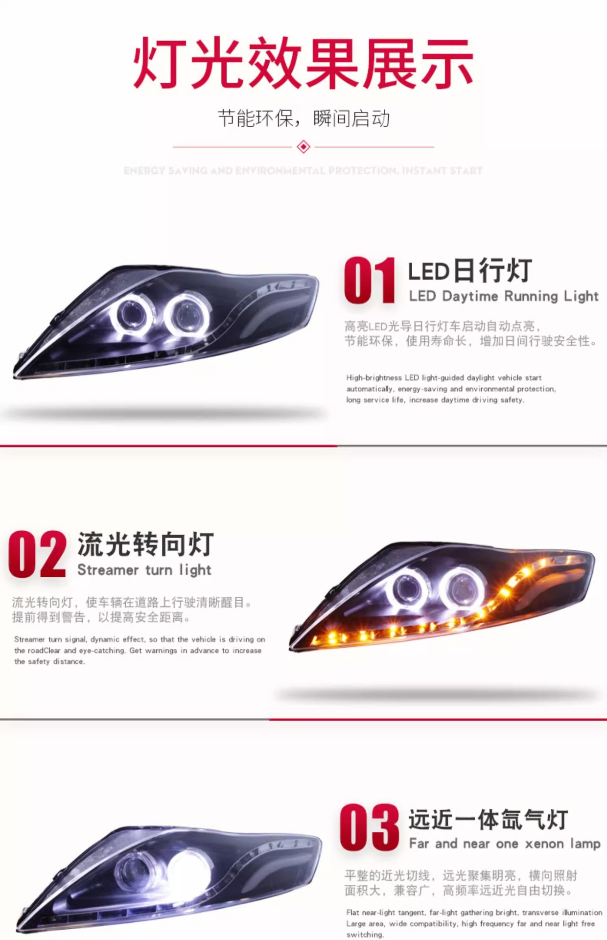 - Enhanced Visibility & Safety: Features bright LED daytime running lights (DRL), projector lenses, and powerful Xenon light source for superior illumination and driving safety.