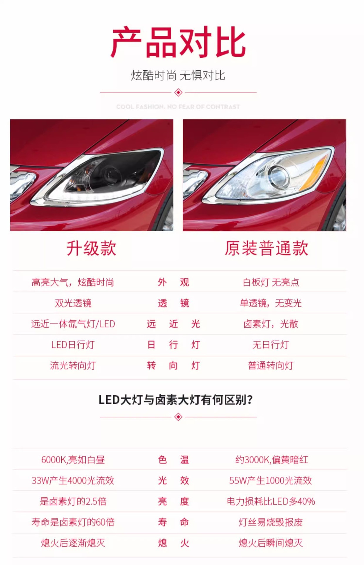 - Enhanced Aesthetics & Style: Features integrated LED daytime running lights (DRL) and projector xenon lighting, upgrading your vehicle’s appearance with a modern, sporty look.