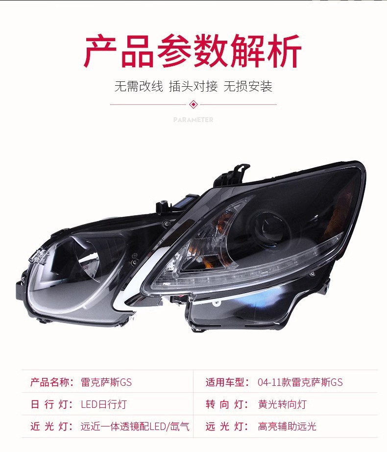 Modified LED DRL Projector Xenon Headlight Assembly for Lexus GS350 2004-2012