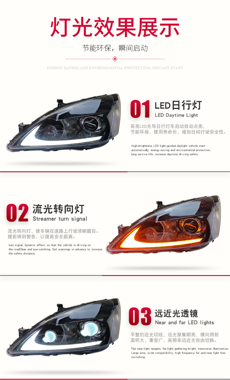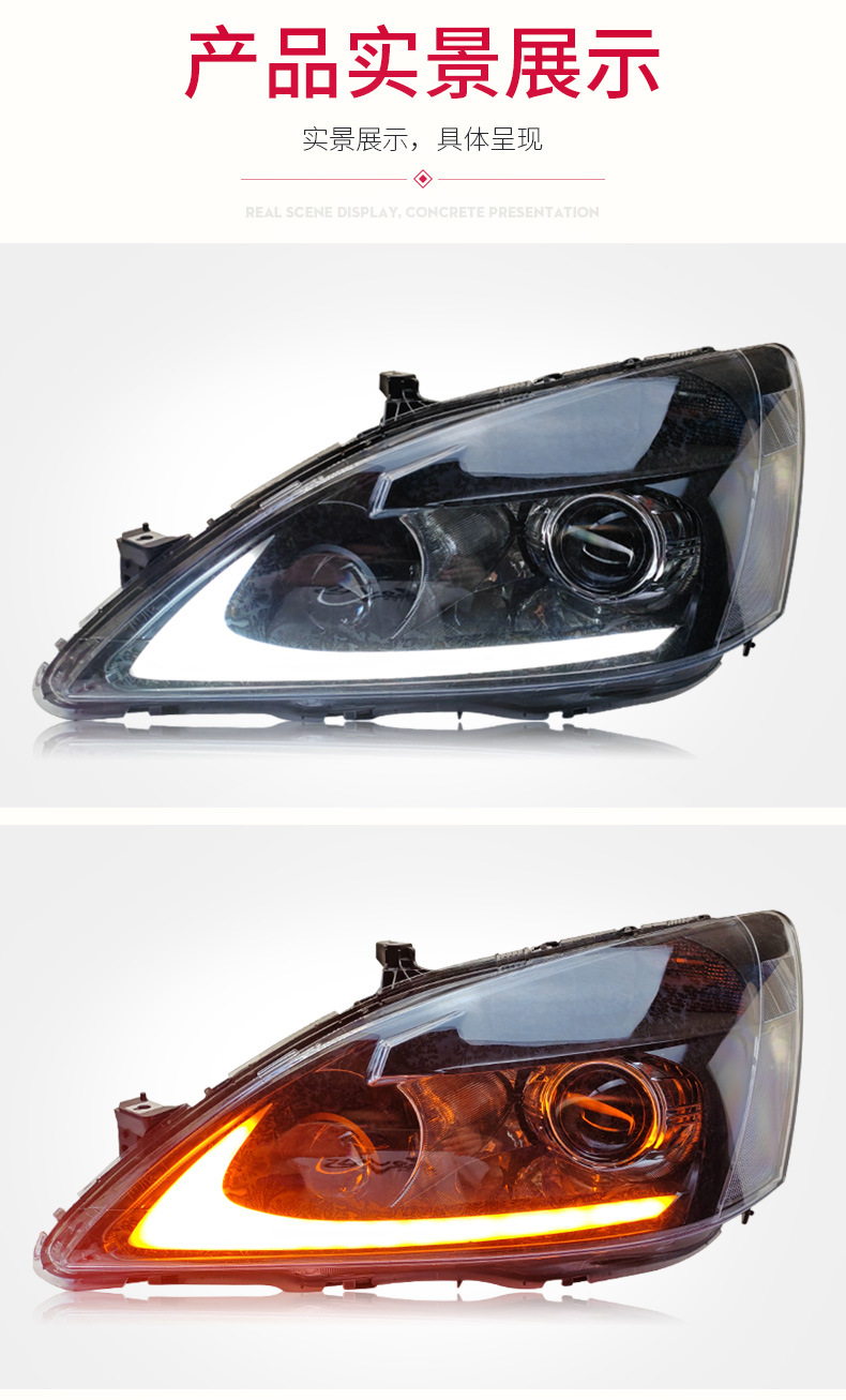 Modified LED DRL Signal LED Bi-Xenon Projector Headlight Assembly for Honda Accord 7th Gen 04-07