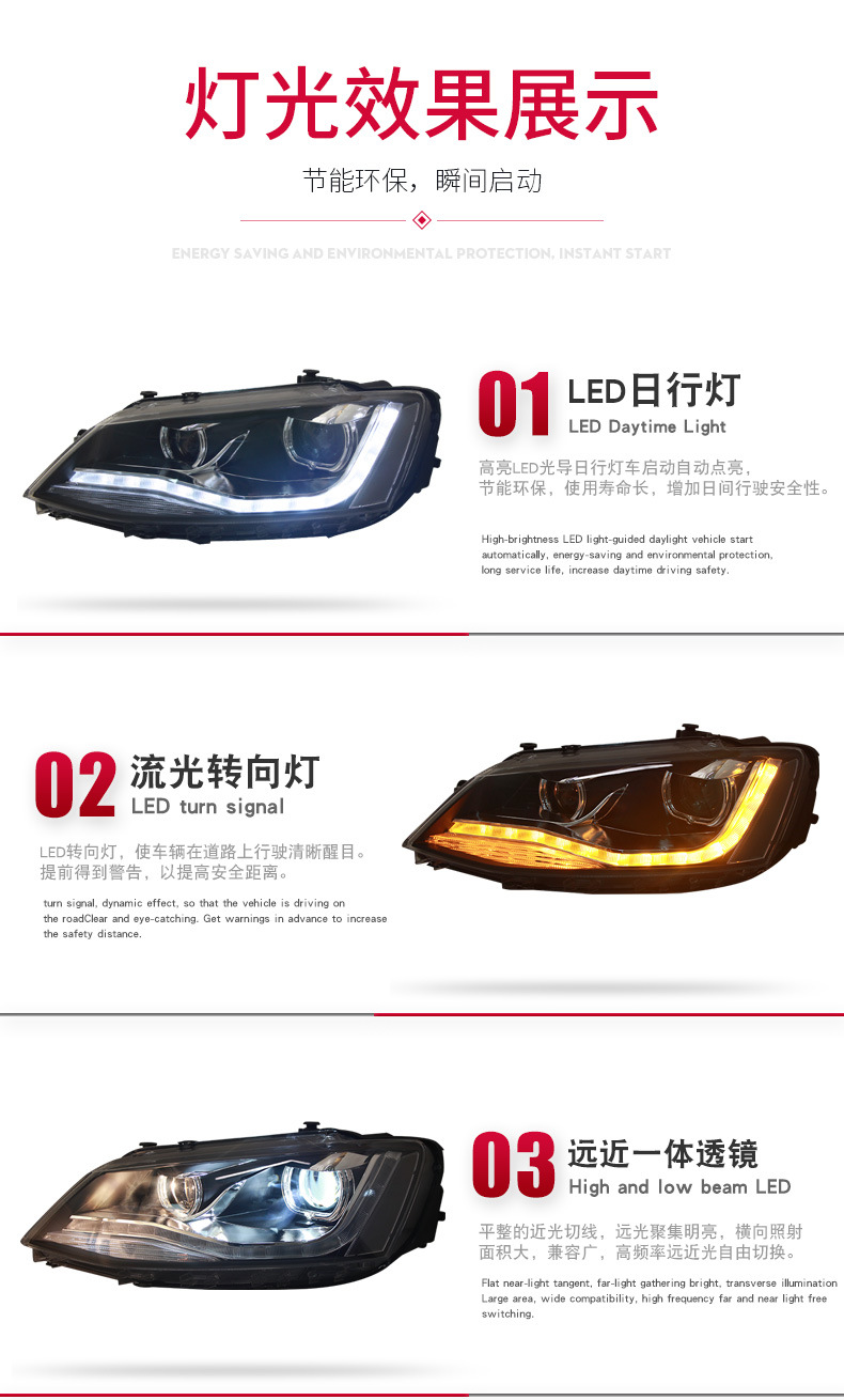 Modified LED DRL Signal Light Bi-Xenon Projector Headlight Assembly for VW New Sagitar 2012-2018