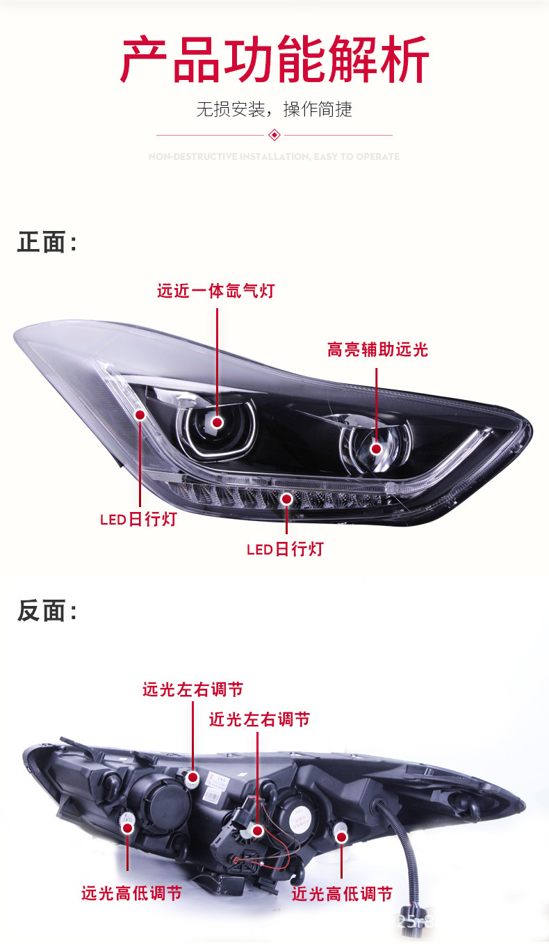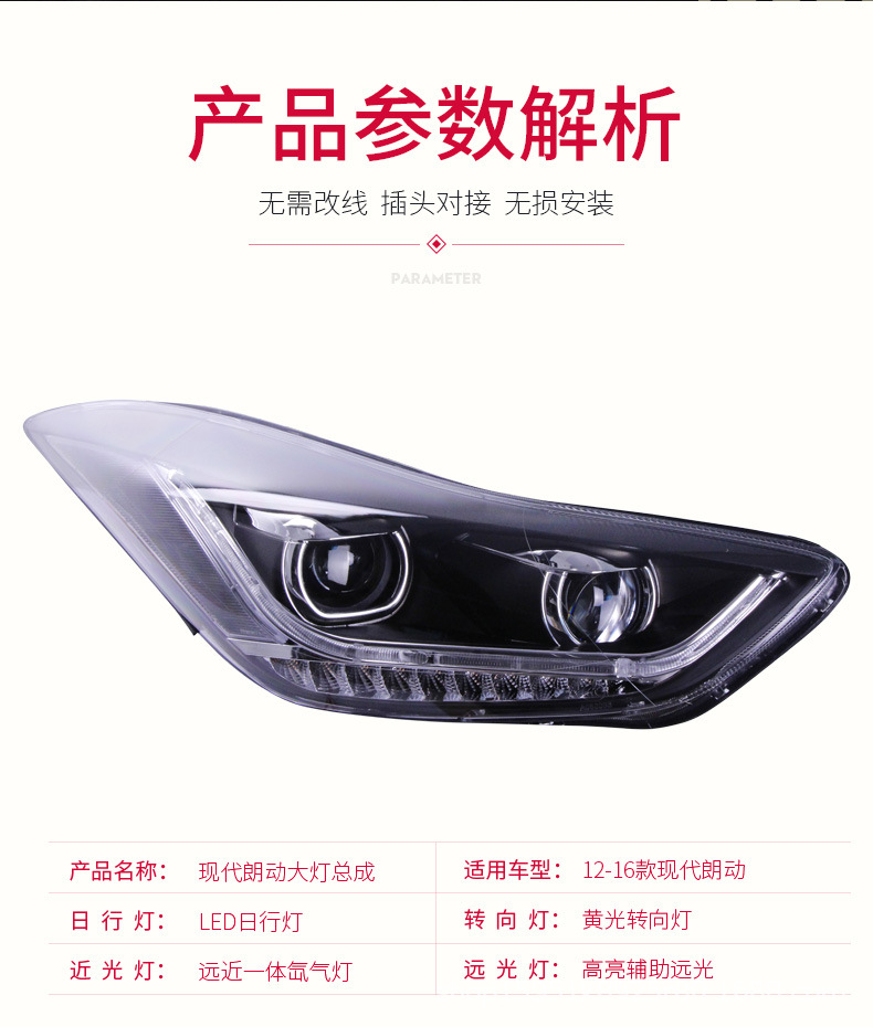 Modified LED DRL Turn Signal Dual Projector Xenon Headlight Assembly for Hyundai Langdong (2012-2017)