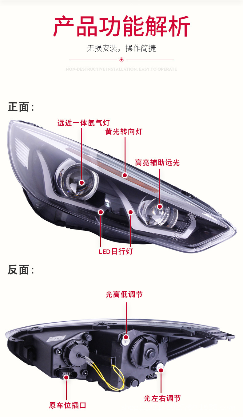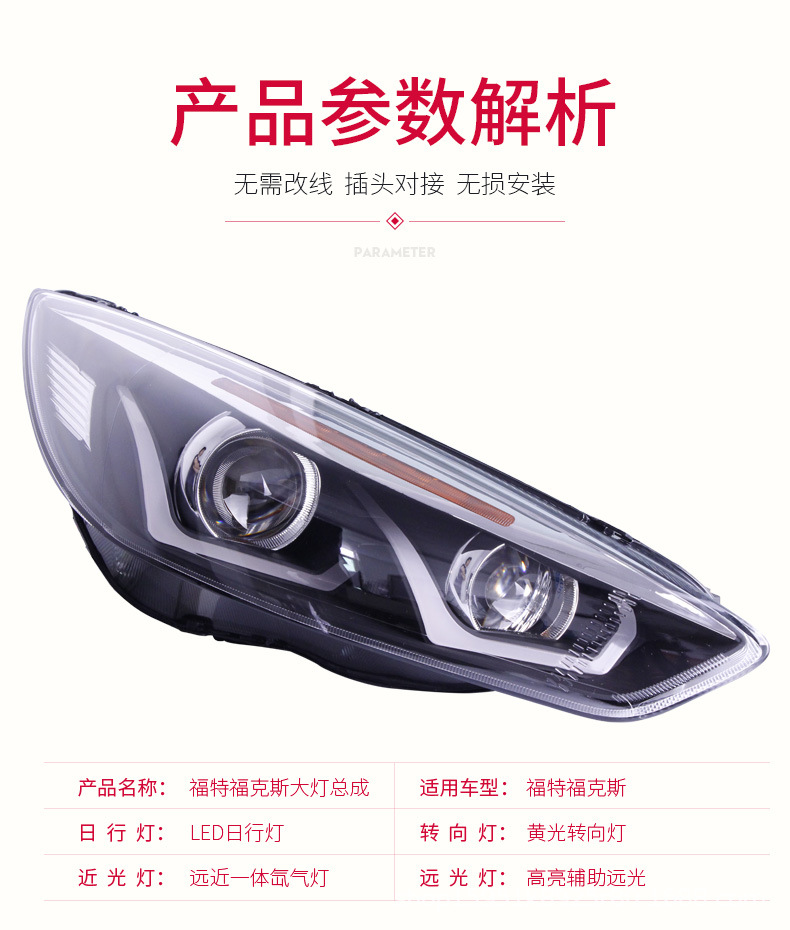 - Enhanced Aesthetics: Upgrade your vehicle’s appearance with integrated LED Daytime Running Lights (DRL) and dynamic turn signals, adding a modern, aggressive, and stylish look to your Ford Focus.