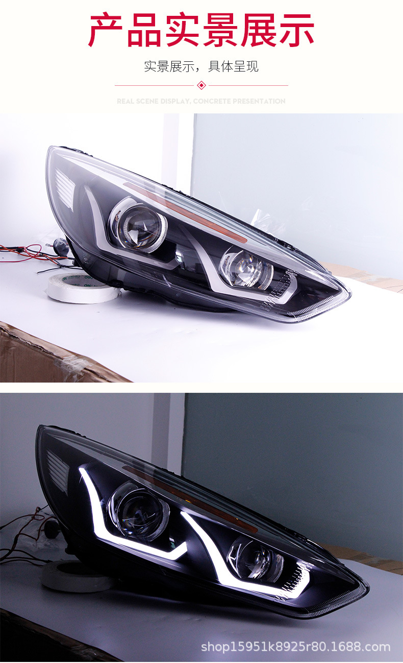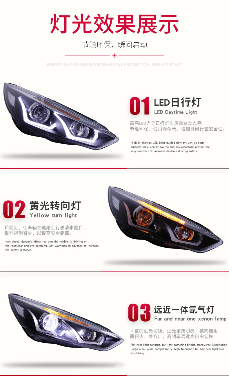 Modified LED DRL Turn Signal Dual Projector Xenon Headlight Assembly for Ford Focus (2015-2018)