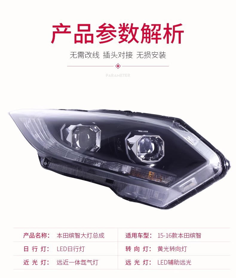 Modified LED Daytime Running Light Bi-Xenon Projector LED Headlight Assembly for Honda Vezel (2015-2016)