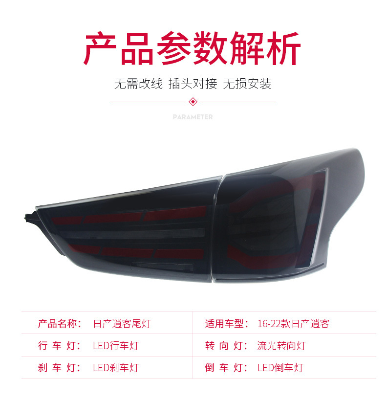 Modified LED Daytime Running Light Brake Sequential Turn Signal Tail Light Assembly for Nissan Qashqai (2016-2022)