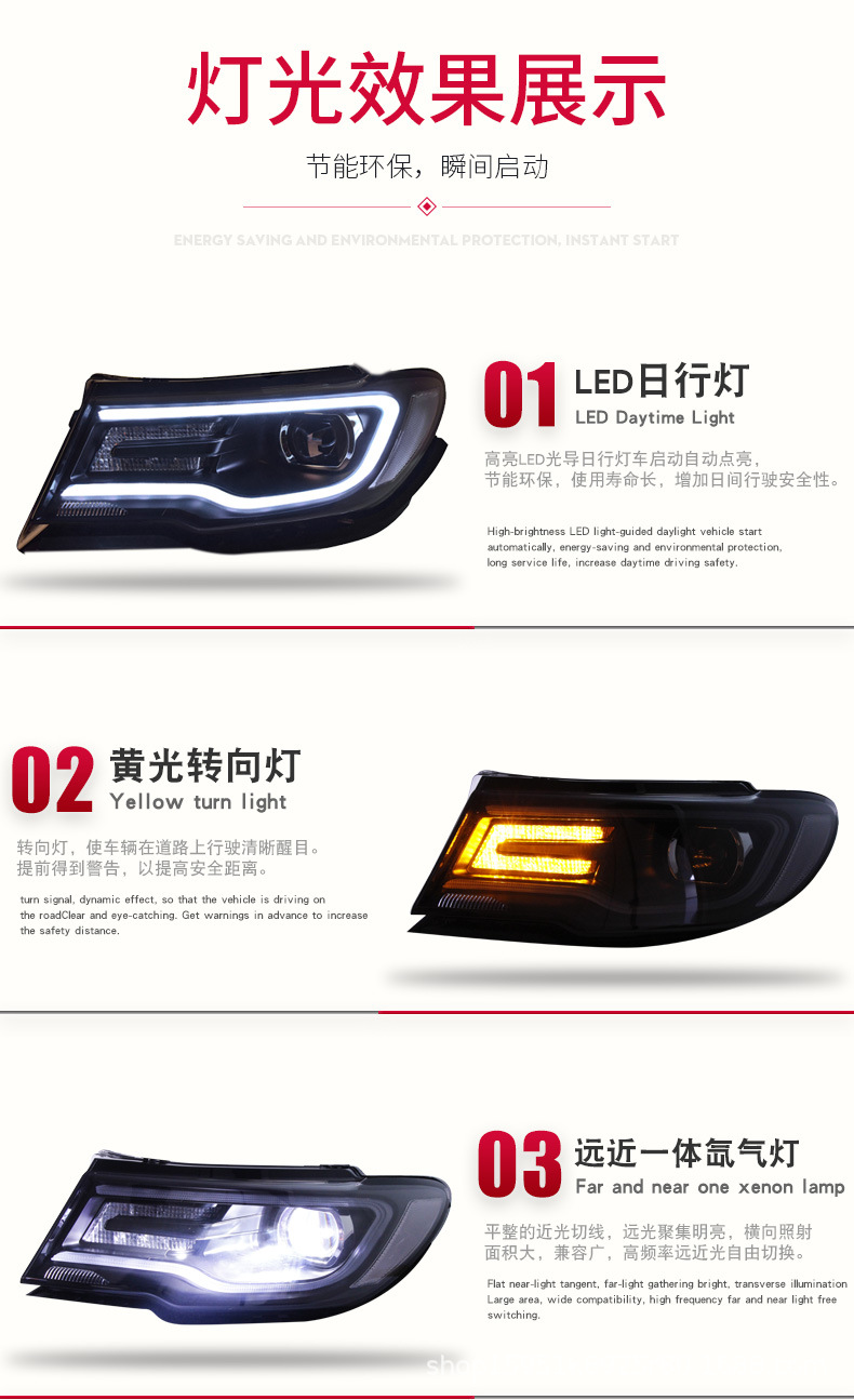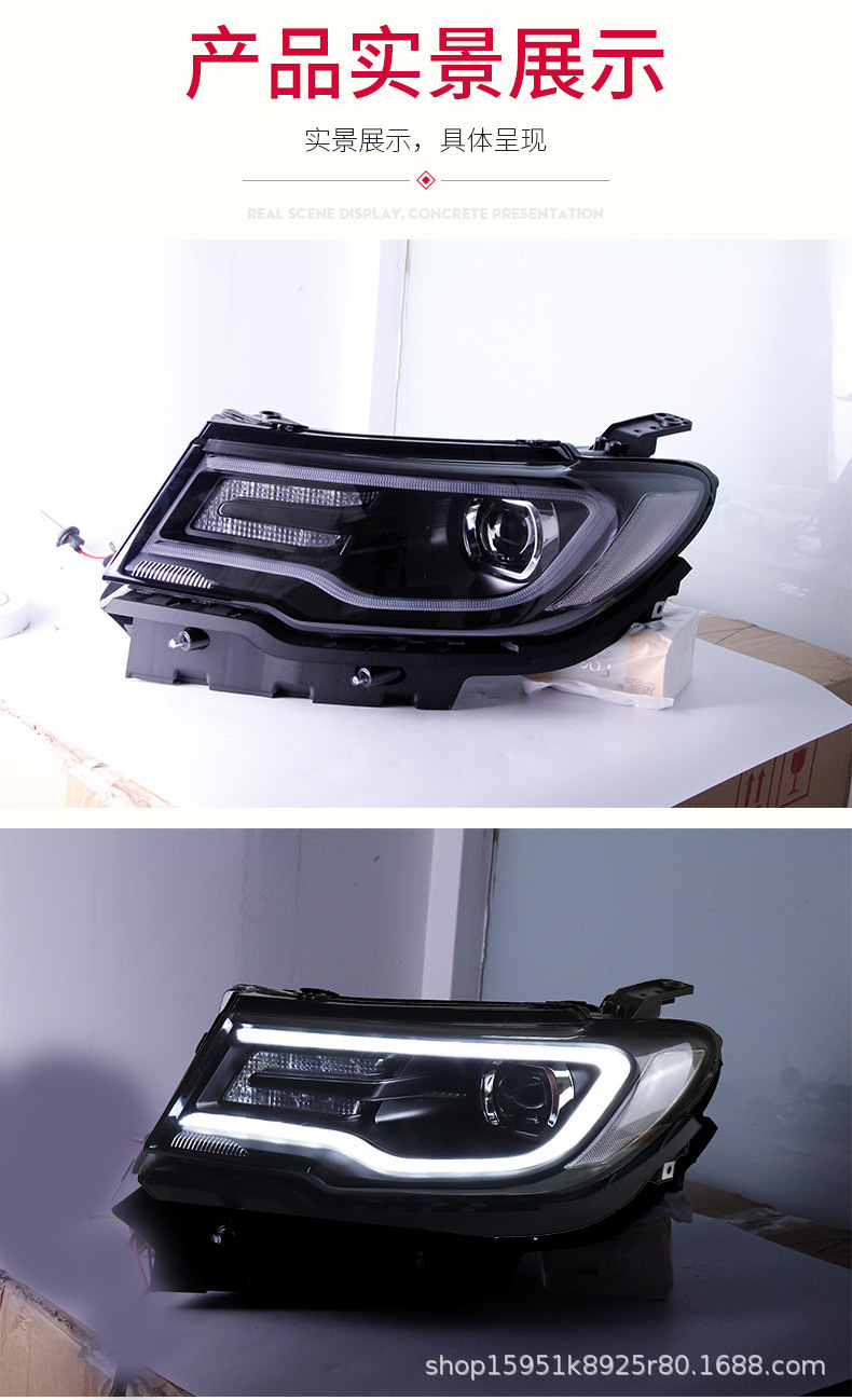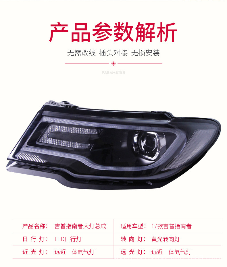 Modified LED Daytime Running Light Projector Xenon Headlight Assembly for Jeep Compass 2017-2019