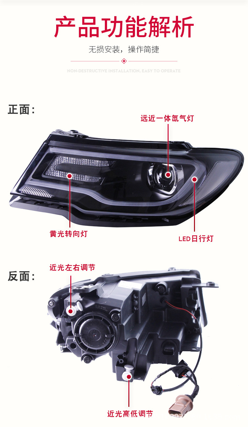 - Precise Fitment: Specifically designed for Jeep Compass 2017-2019 models, ensuring a perfect, direct-fit replacement for your original headlight assembly without any modification.