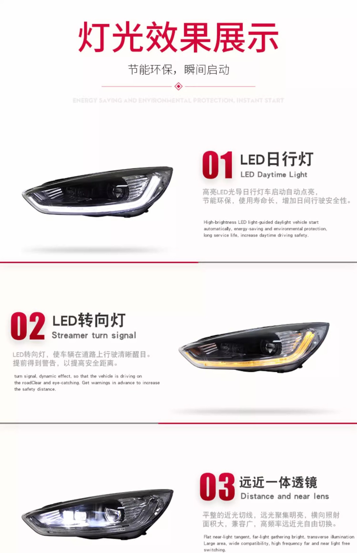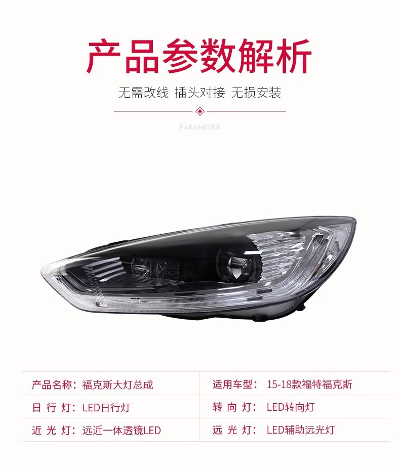 - Complete Headlight Assembly: This package includes a pair of full LED headlight assemblies (left and right), offering a comprehensive lighting solution that enhances both the appearance and functionality of your Ford Focus.