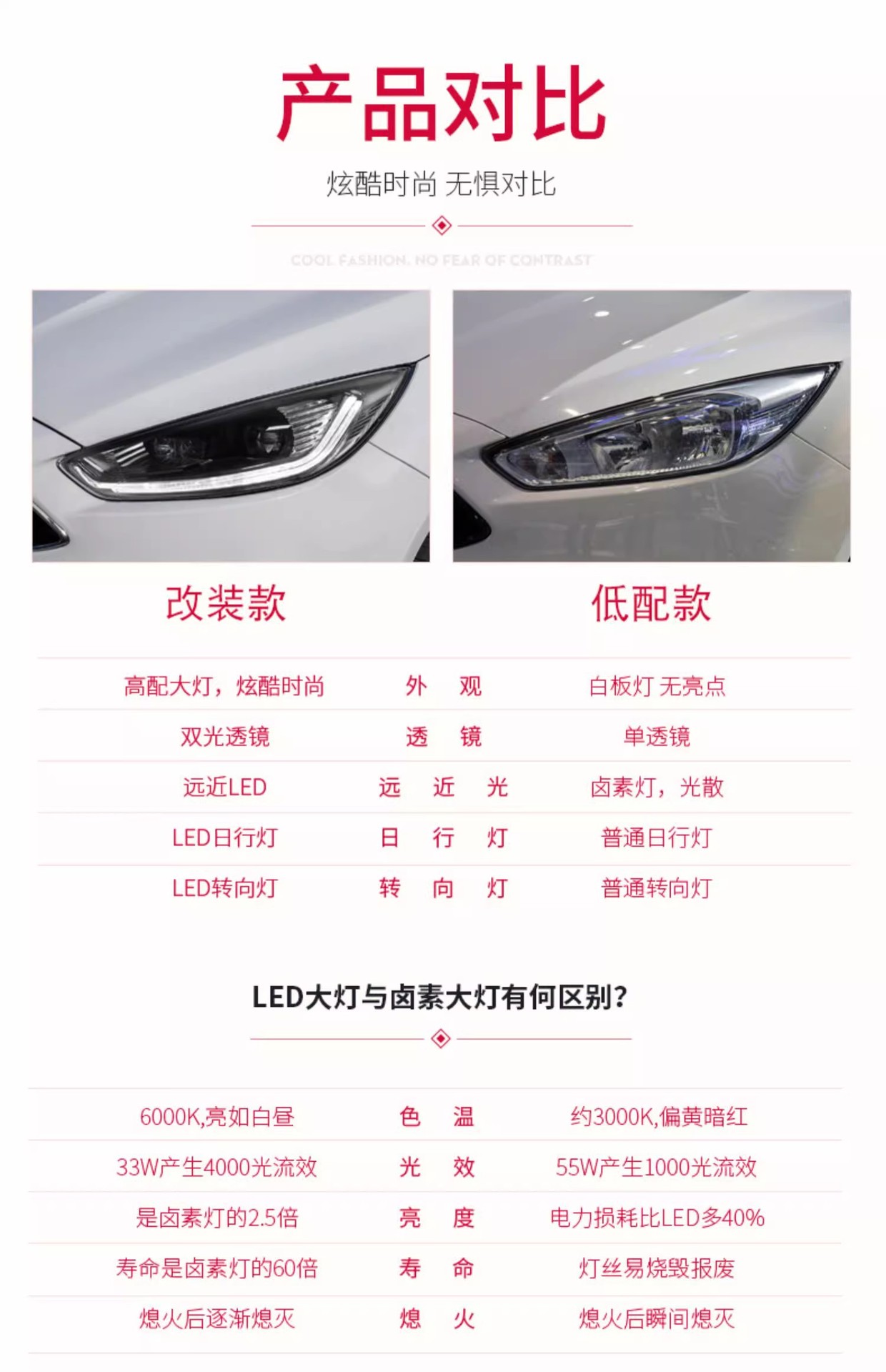 - Modern Styling & Visibility: Upgrade your vehicle’s aesthetics with integrated LED daytime running lights and dynamic turn signals, providing a sleek, modern look while significantly improving road presence and safety.