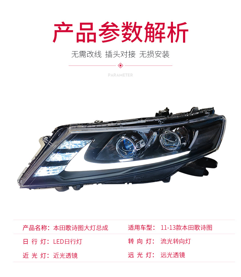 Modified LED Daytime Running Light Turn Signal Dual Lens Headlight Assembly for Honda Crosstour (2012-2014)