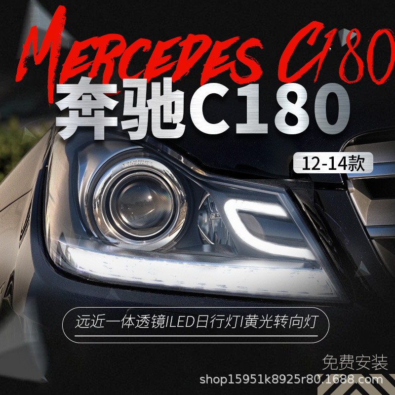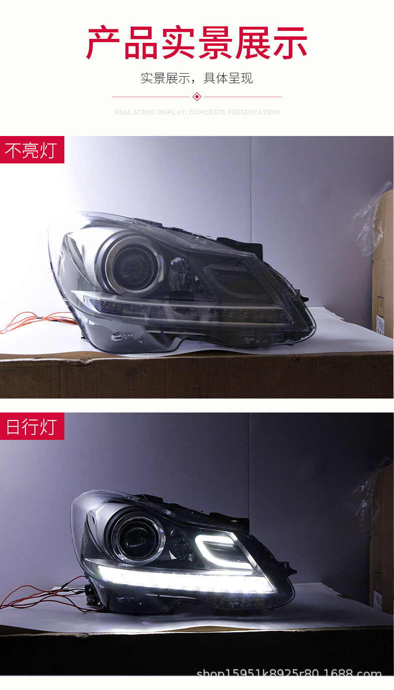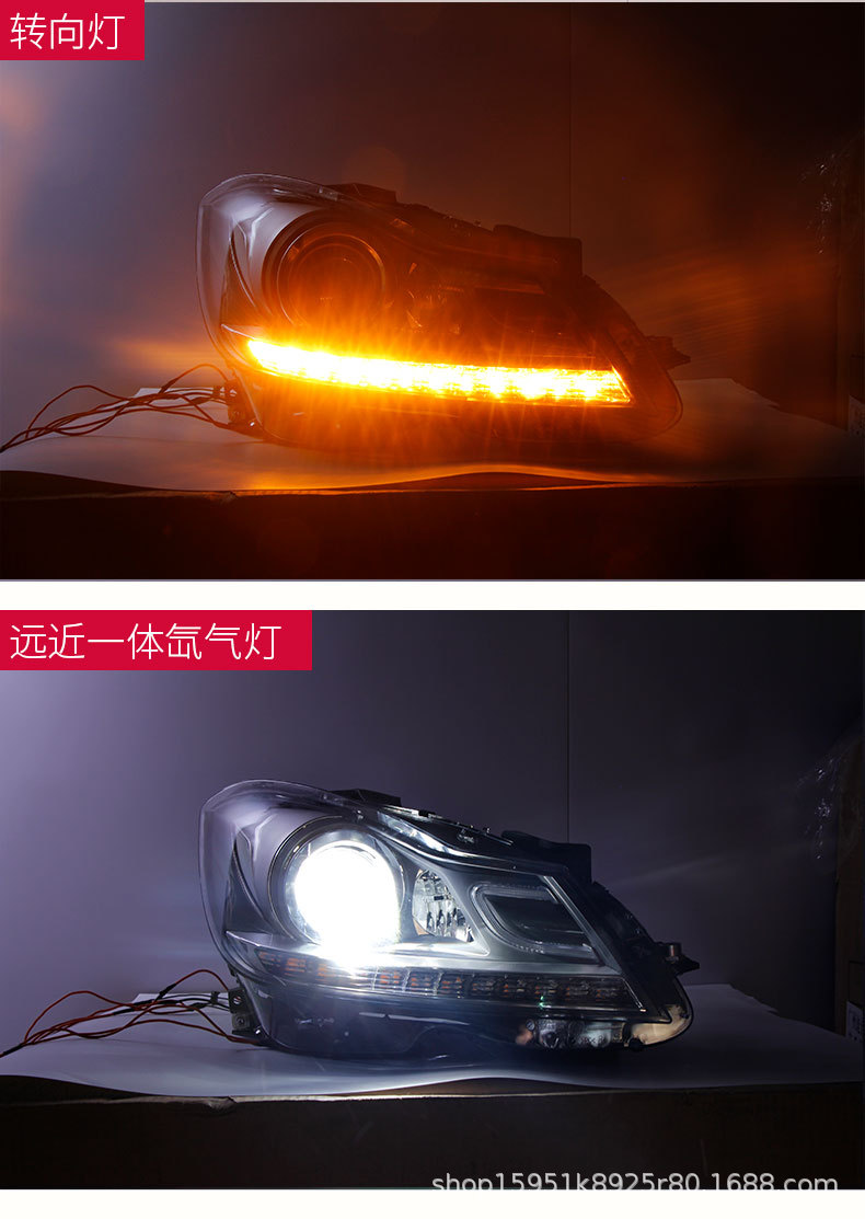 Modified LED Dual Color DRL Xenon Headlight Assembly for Mercedes-Benz W204 C180 C200