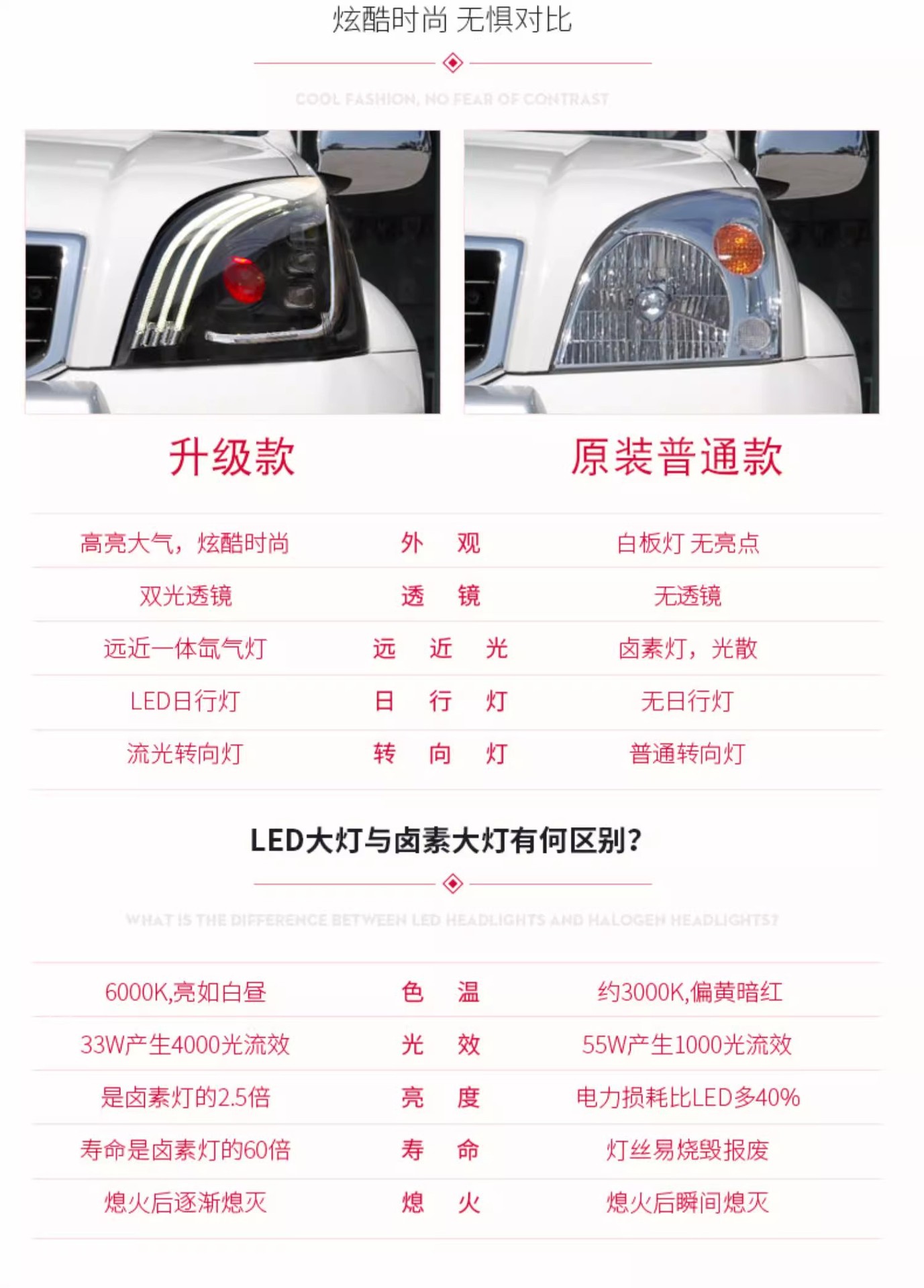 - Enhanced Visibility & Safety: Features an integrated LED headlight assembly with upgraded high-beam and low-beam LED kits for superior illumination and enhanced driving safety.