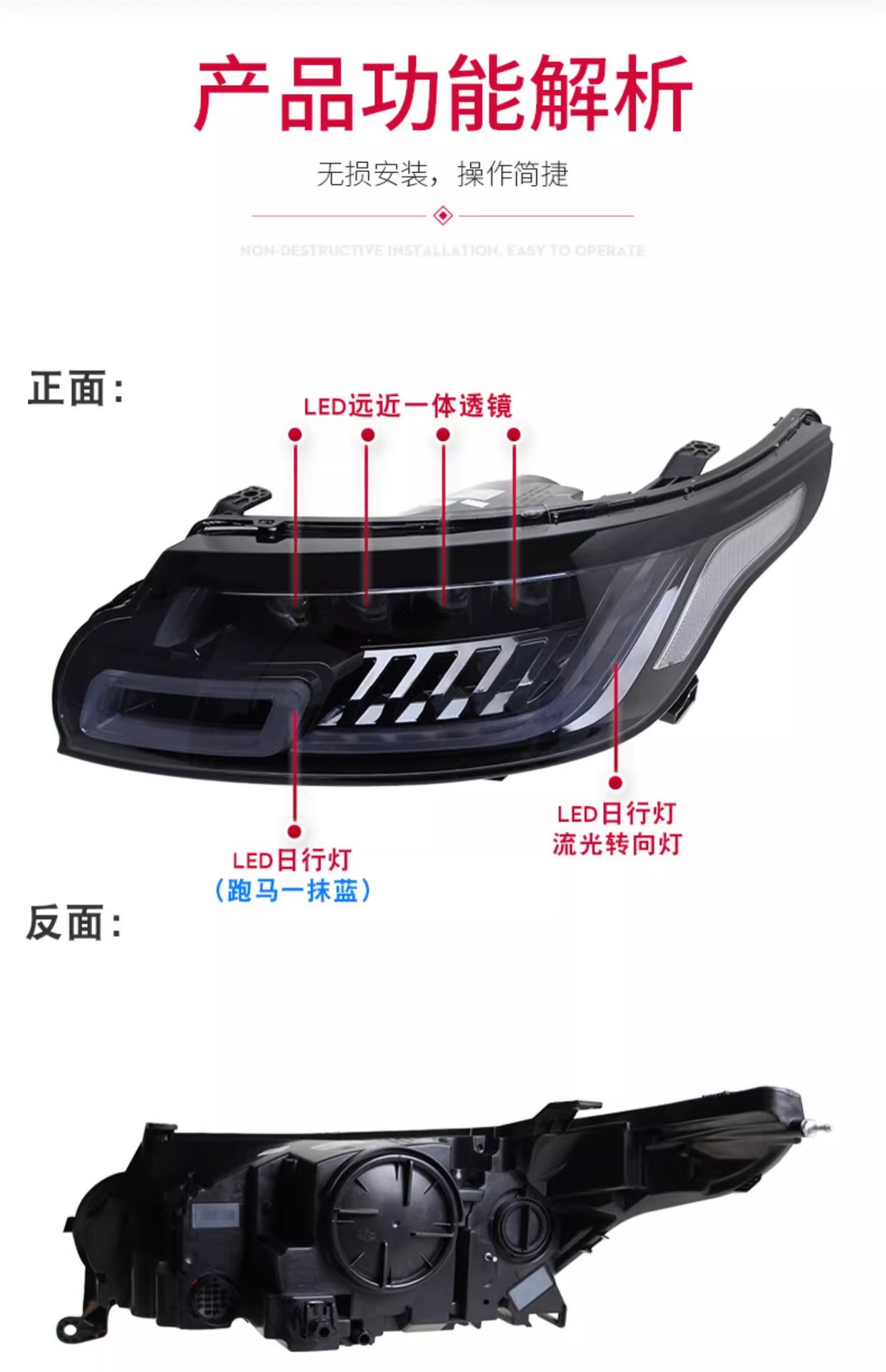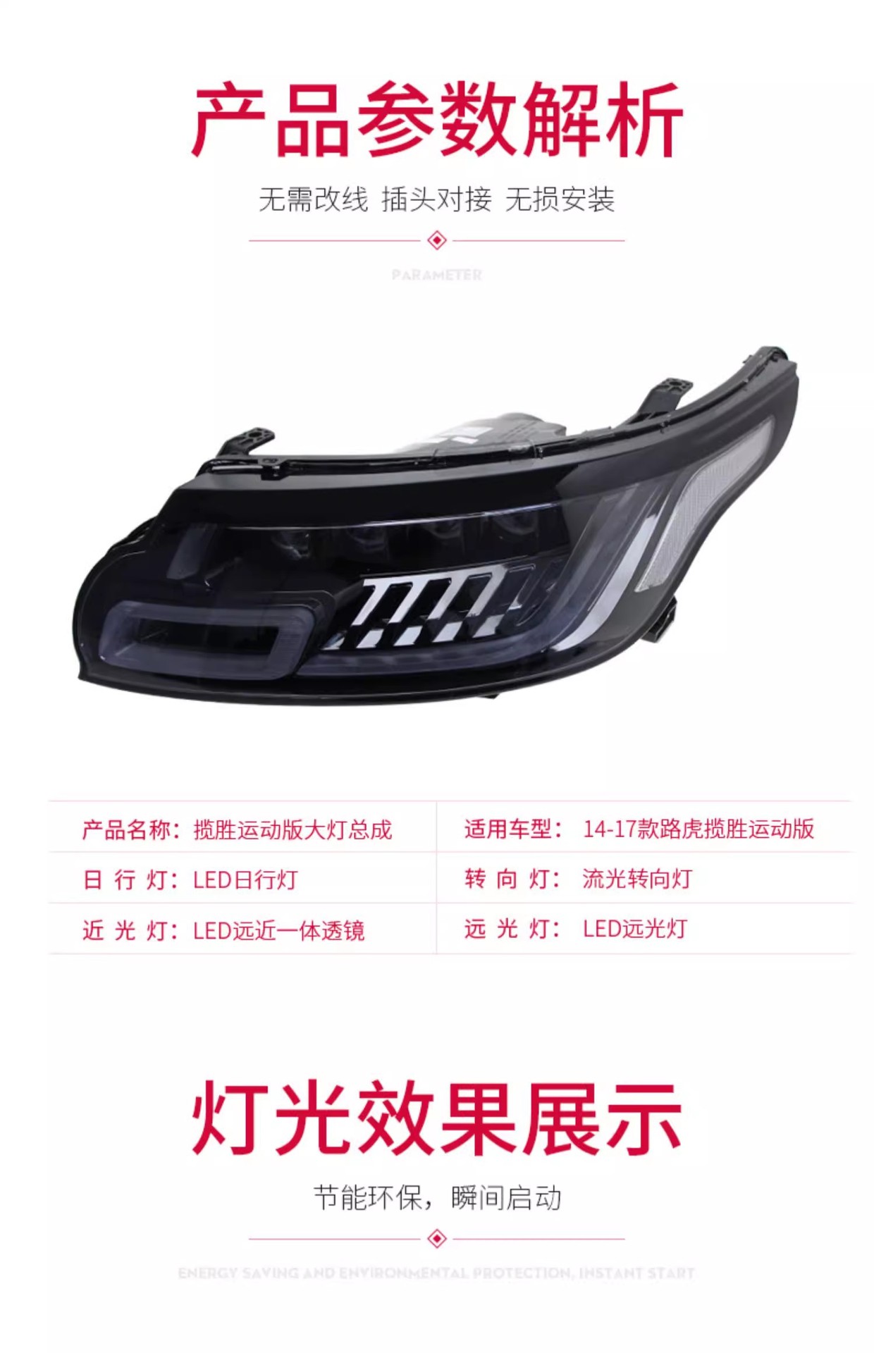 - Precise Fitment: Specifically designed for Land Rover Range Rover Sport models from 2014 to 2017, ensuring a perfect, seamless replacement for your original headlamp assembly.