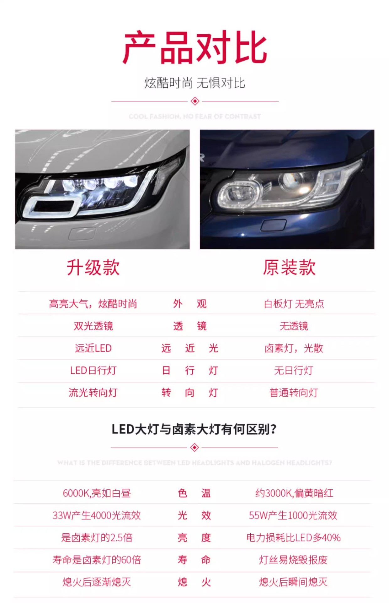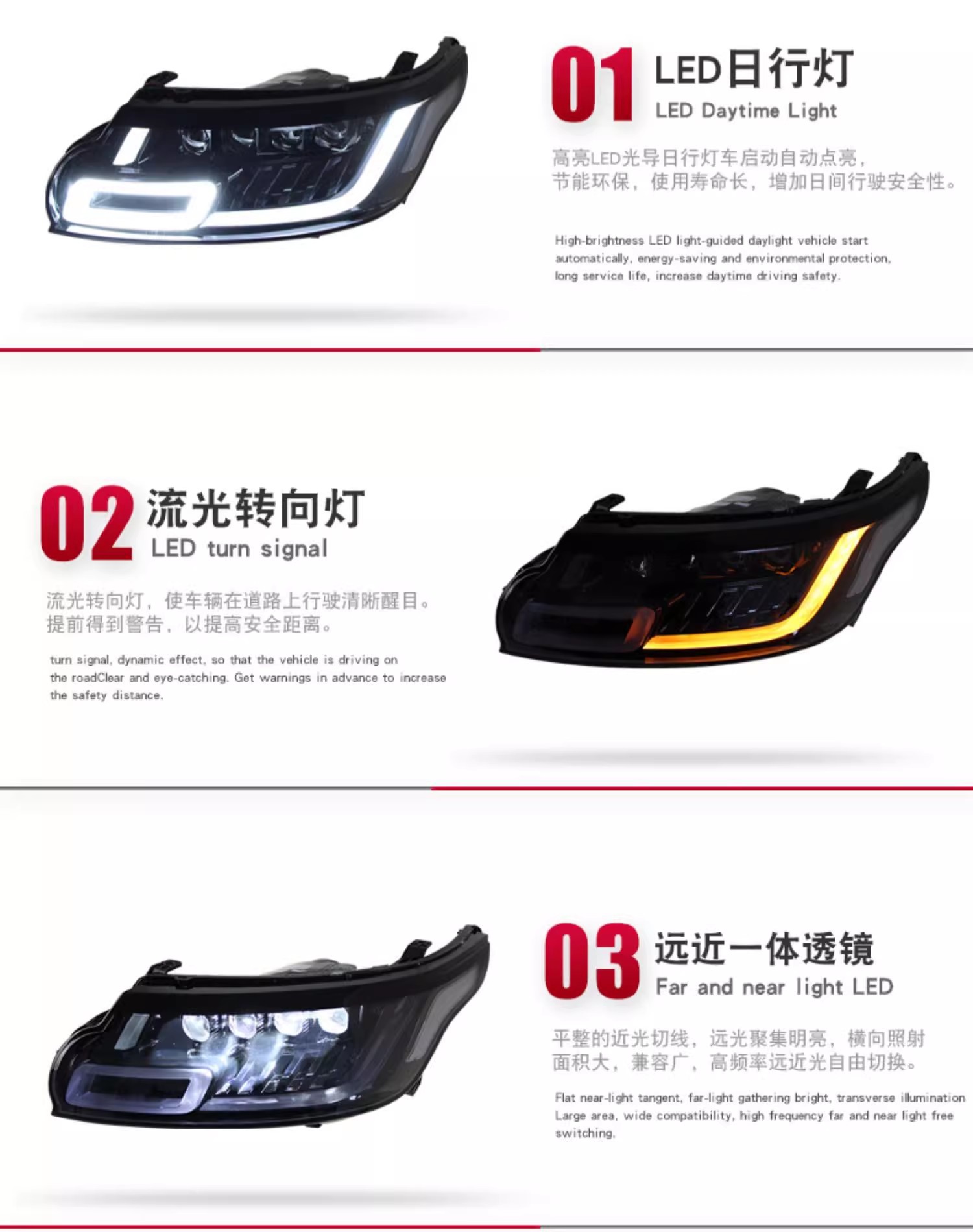 Modified LED Projector Headlights DRL Sequential Turn Signal for Land Rover Range Rover Sport 2014-2017