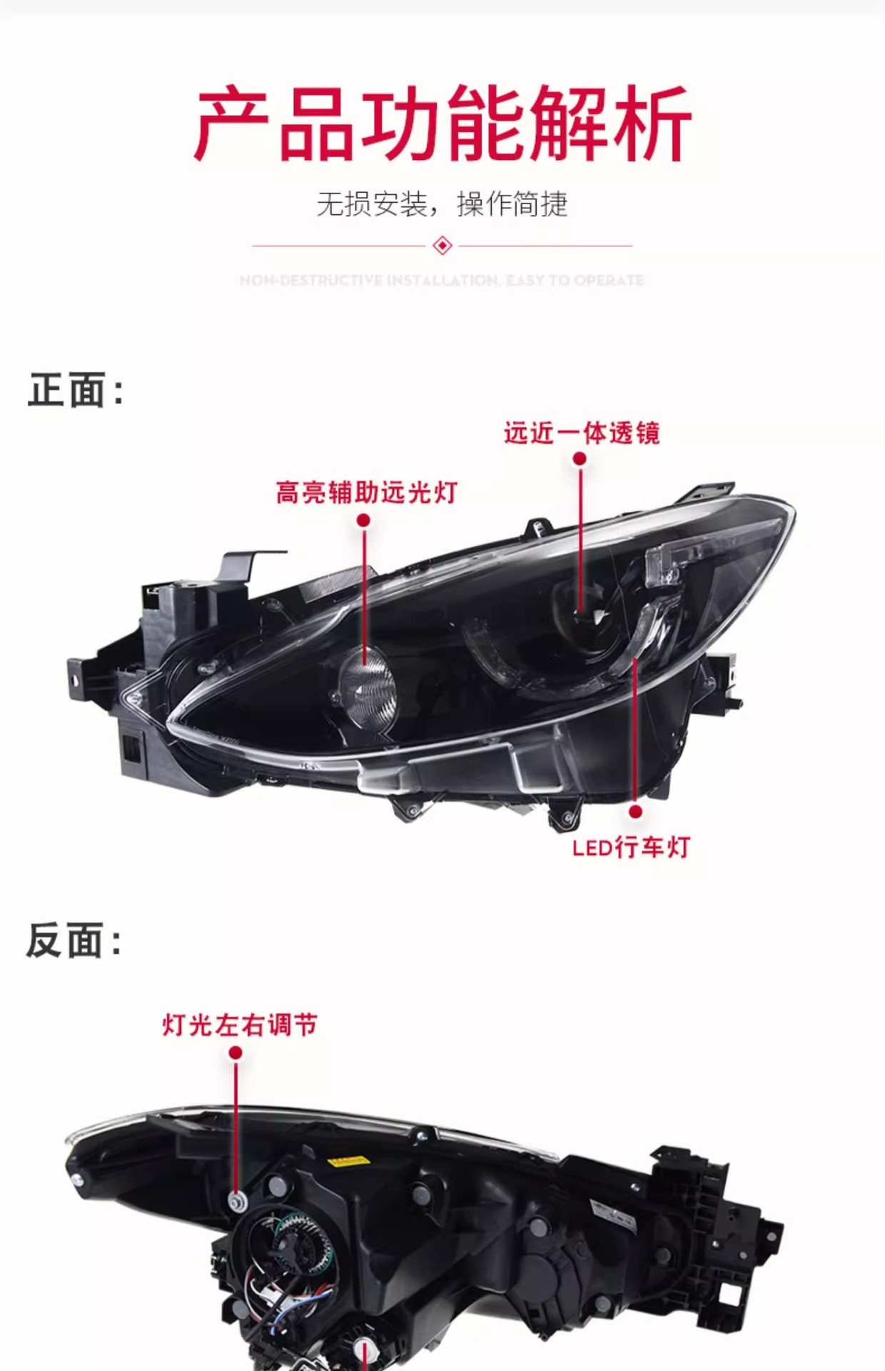 - Stylish & Modern Design: Upgrade your vehicle’s aesthetics with a modern, modified headlight assembly that adds a sleek and aggressive look to your Mazda 3 Axela.