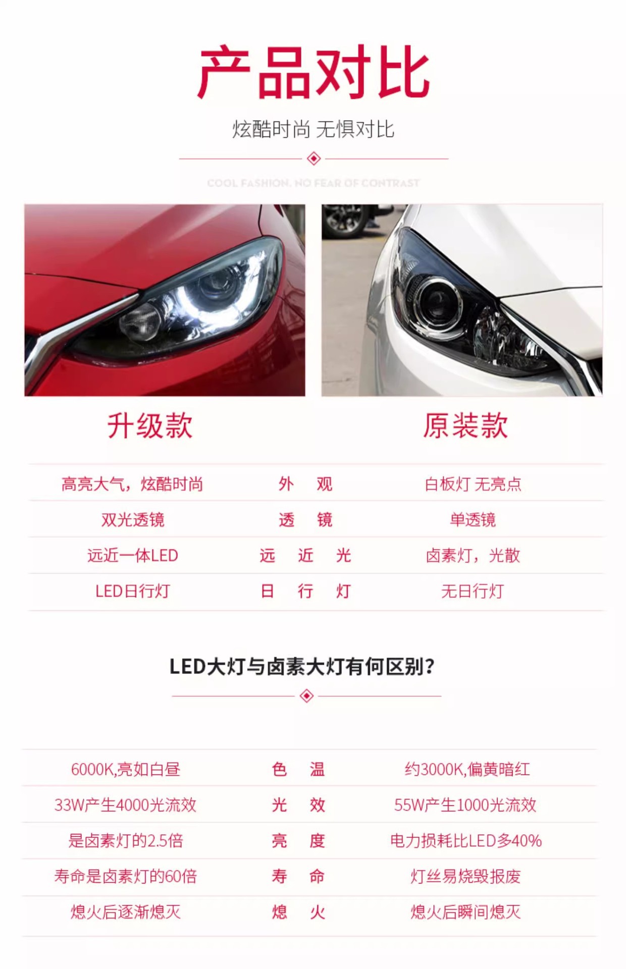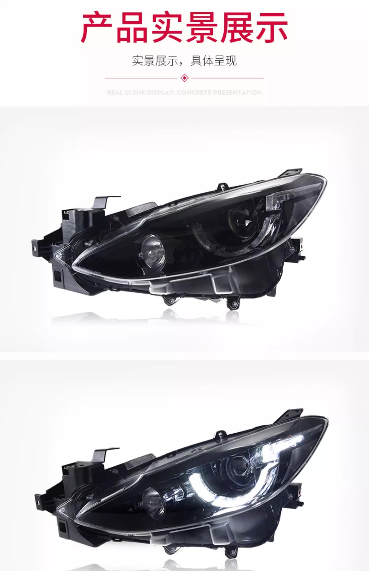 Modified LED Projector Xenon Headlight Assembly with Daytime Running Light for Mazda 3 Axela (2014-2016)